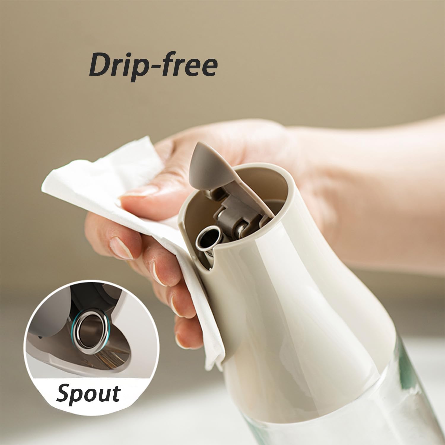 Olive Oil Dispenser Bottle, Auto Flip Non-Drip Design, Leak Proof Soy Sauce & Vinegar Dispenser, Glass Oil Bottle with 500ml Capacity, Warm Grey (1)