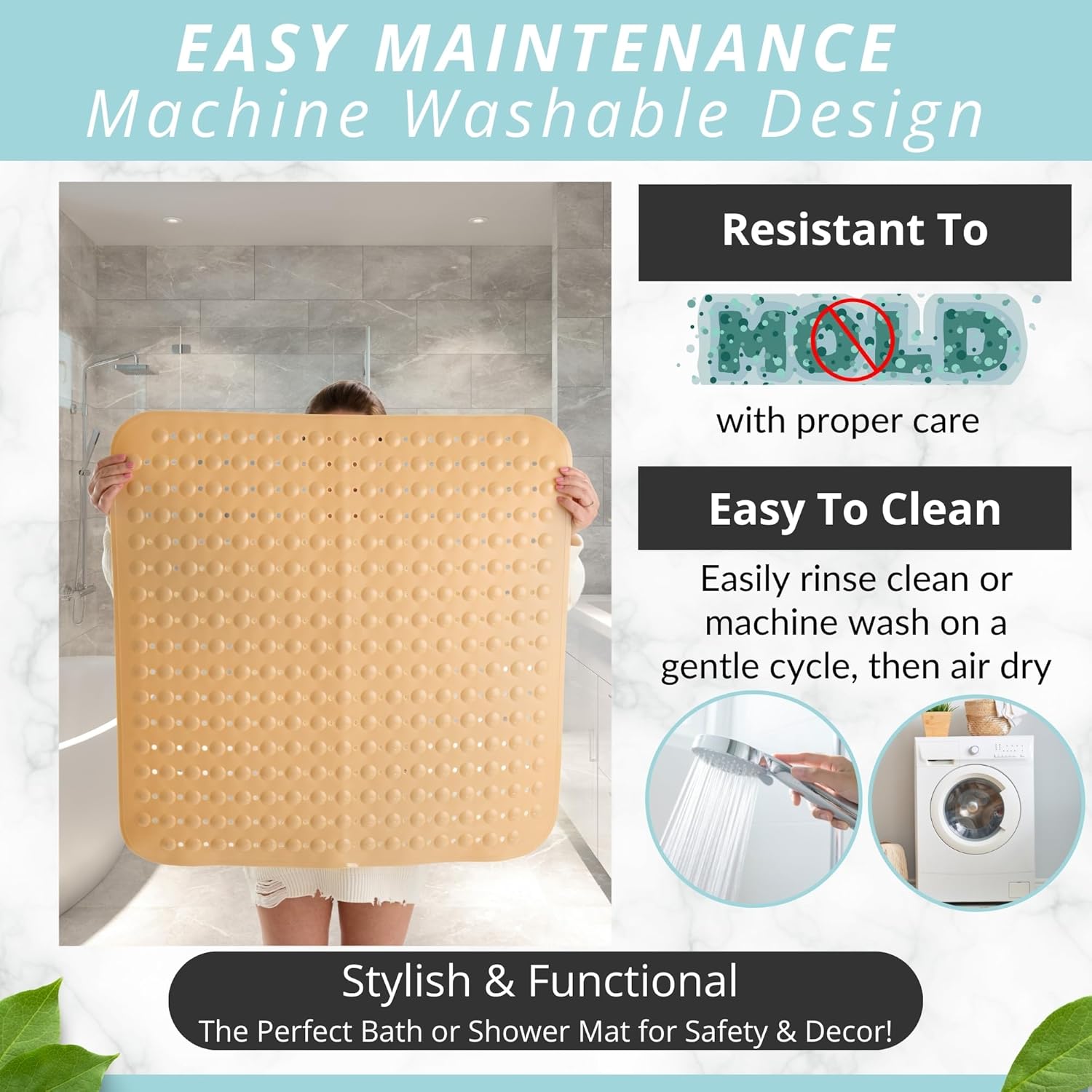- NON-SLIP MAT enjoy 360-degree protection in your shower; prevent falls with an extra large Square bathroom shower bath mat for larger shower stalls with pliable suction cups for secure sticking capacity to help securely hold the shower mat to shower stall floors for safe anti-slip protection
