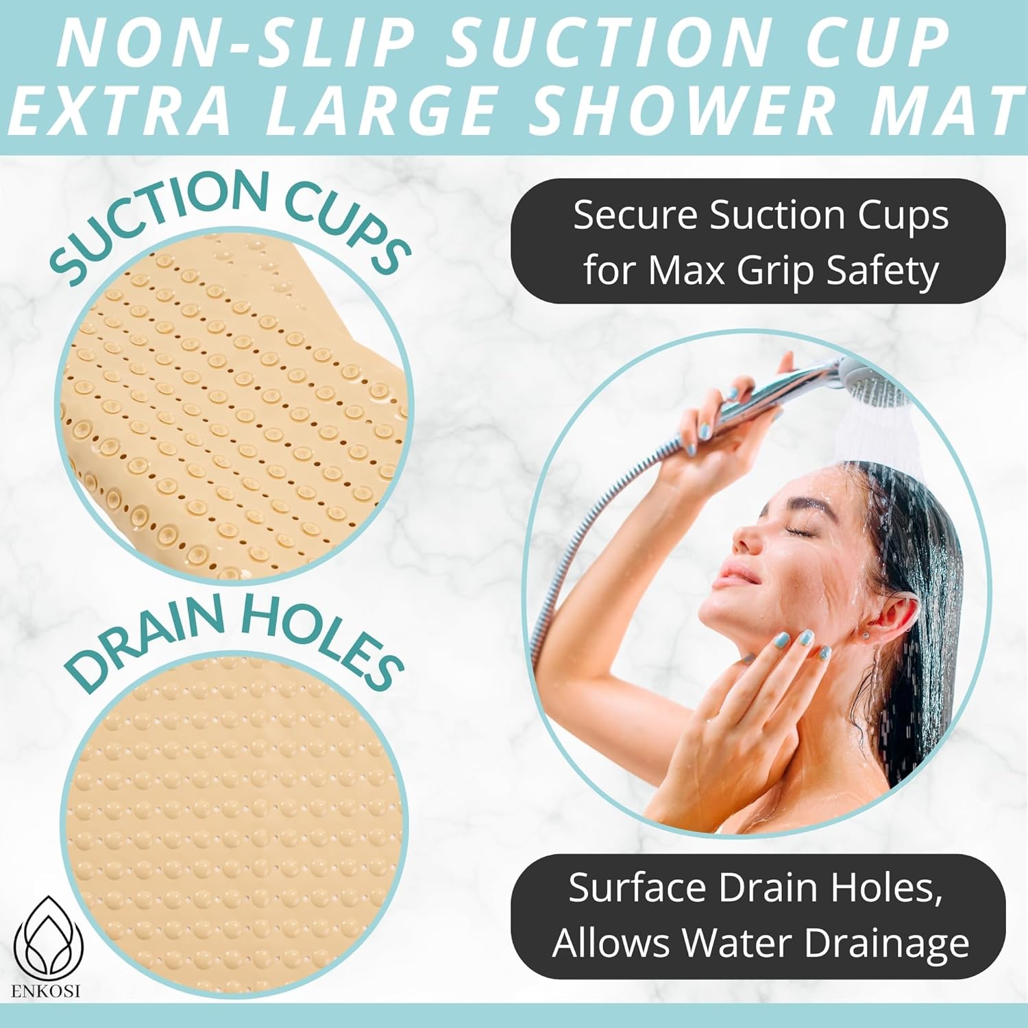 - ENKOSI is committed to excellence in bathroom products, prioritizing both quality and safety. Our mats are meticulously designed to meet your needs while ensuring your safety and comfort. Count on us for a seamless and confident shopping experience, backed by our dedication to your satisfaction