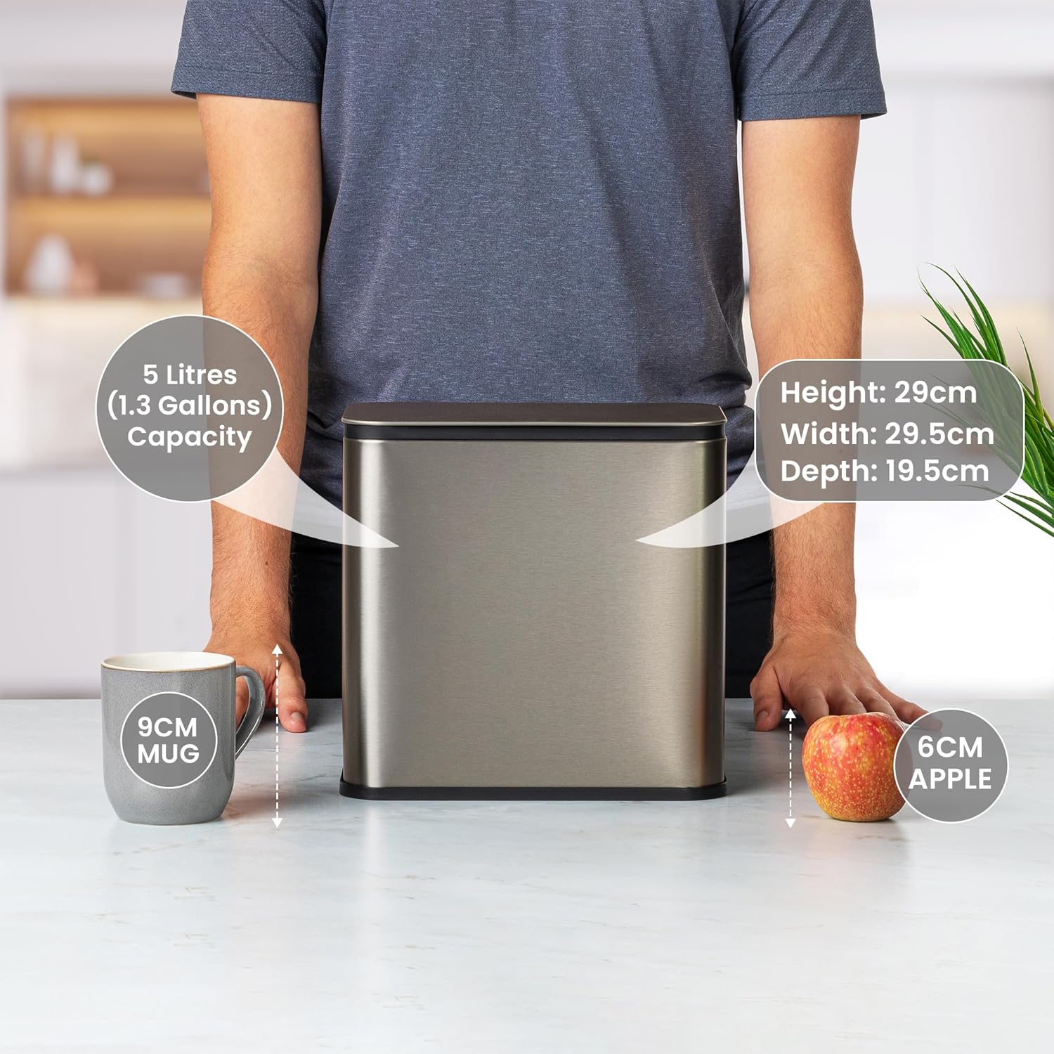 - Practical and Durable – This 1.3-gallon compost bin is built to last, featuring a rust-resistant stainless steel body that resists cracks, chips, and stains while offering a sleek, premium appearance. Perfectly sized for daily food waste, it’s ideal for households looking to manage compostable materials efficiently without taking up too much space.