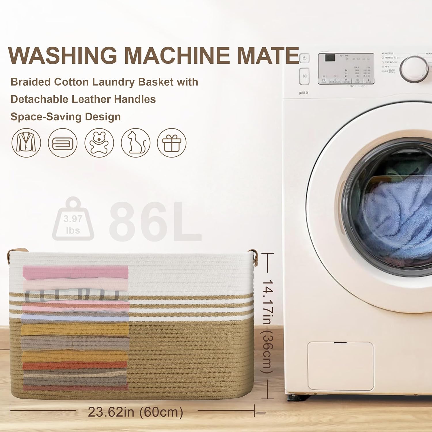 - HOUSEHOLD STORAGE SOLUTION: 86L oversized basket. The extra large basket can hold the entire family's daily laundry and can be used as a toy storage basket, a baby laundry basket, a nursery laundry basket, a blanket/throw storage for living room or a towel basket for bathroom