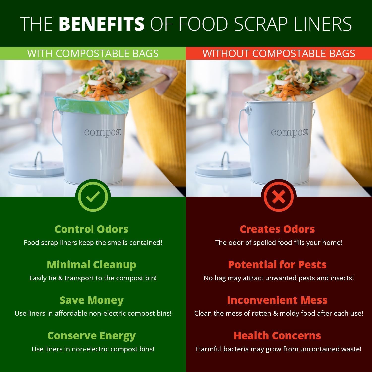 1.6 Gallon Compostable Trash Bags Handle, Heavy Duty Thick 0.6 Mil, 6.06 Liter, 50 Bags, Small Kitchen Food Scrap Waste Bag, ASTM D6400, US BPI and OK Compost Home Certified