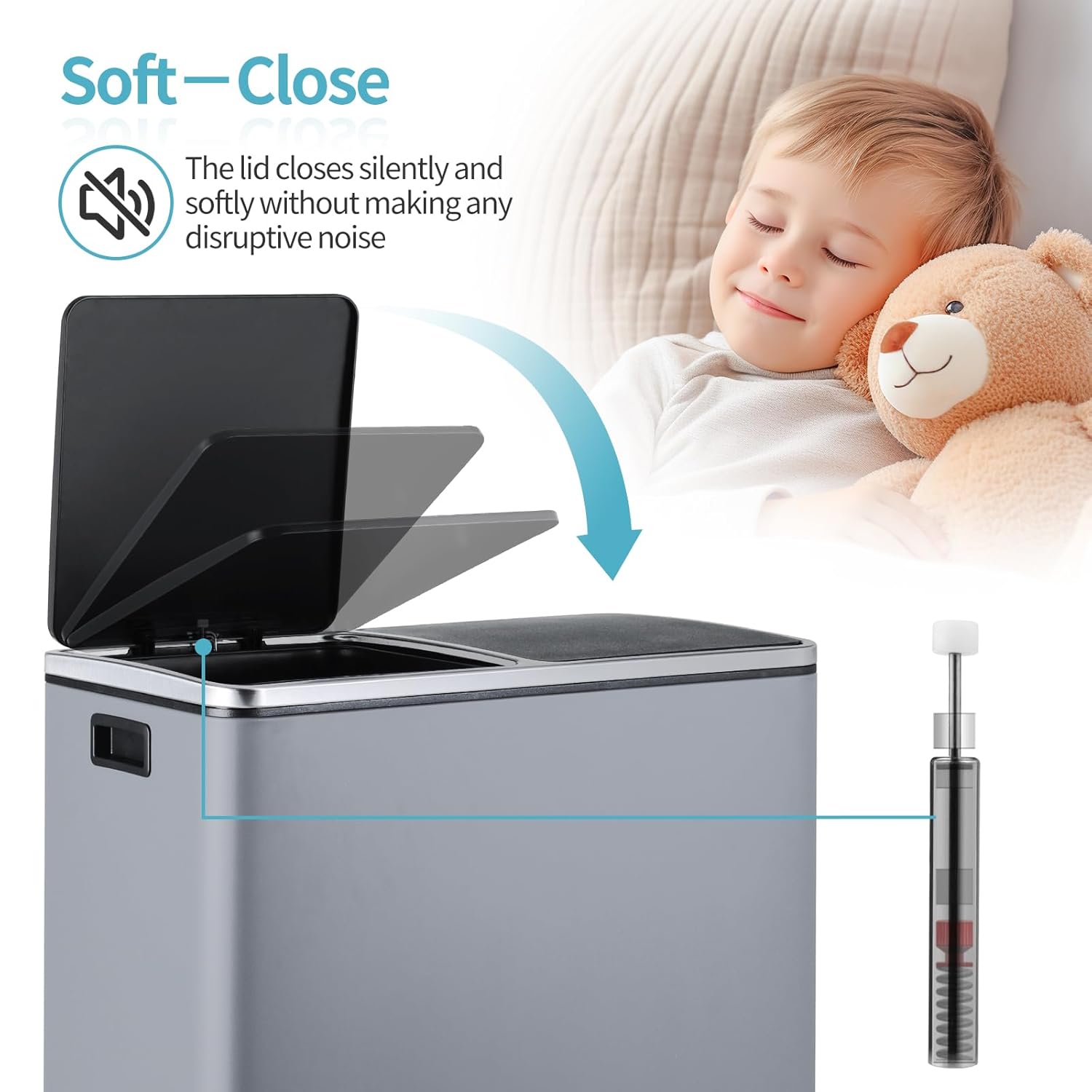 - 2×8-Gallon Compartments: 16-gallon step trash can has two compartments, combining garbage and recycling. Completely separated dual garbage and recycling can also avoid the smell of garbage. 2 removable inner buckets increase convenience