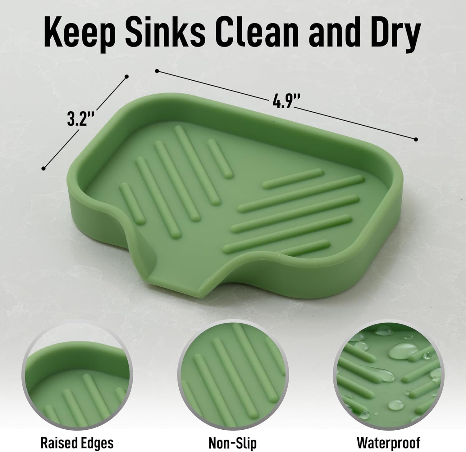 - MESS-FREE COUNTERTOPS: Keep your sink area tidy and free from soap residue with our small silicone sponge holder. Measuring 4.9 x 3.3 inches, this compact tray is ideal for holding a sponge, scrubber, soap bar, or small brush. Its space-saving design is perfect for use in kitchens, bathrooms, laundry rooms, or vanities—great for organizing small essentials like jewelry, makeup, or accessories.