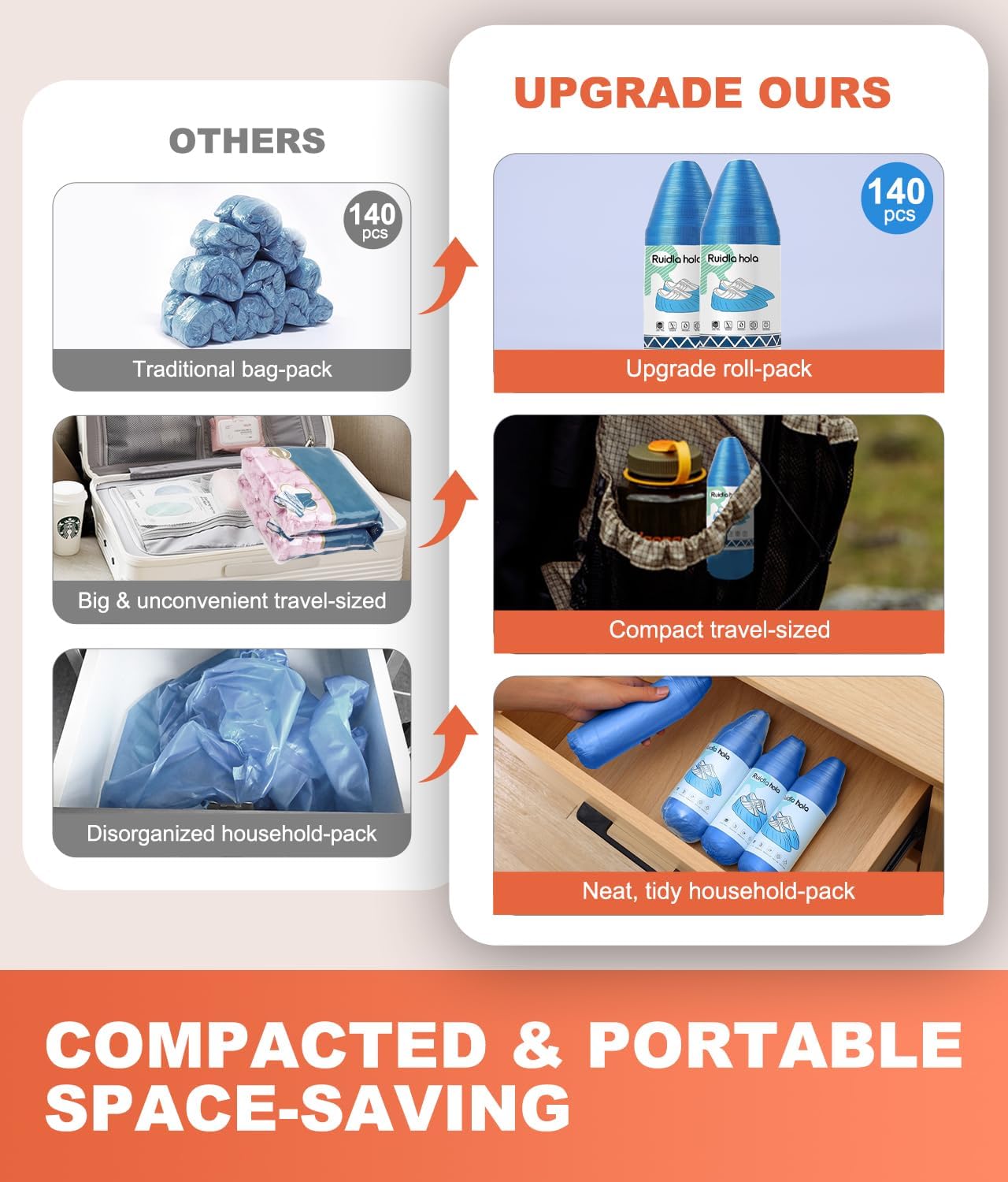 - Upgrade Roll-Pack Design: The shoe booties disposable are portable & space-saving; Featuring a perforated line for effortless separation, you can access shoe protector covers quickly; Carry shoe covers disposable with you for instant use in any situation