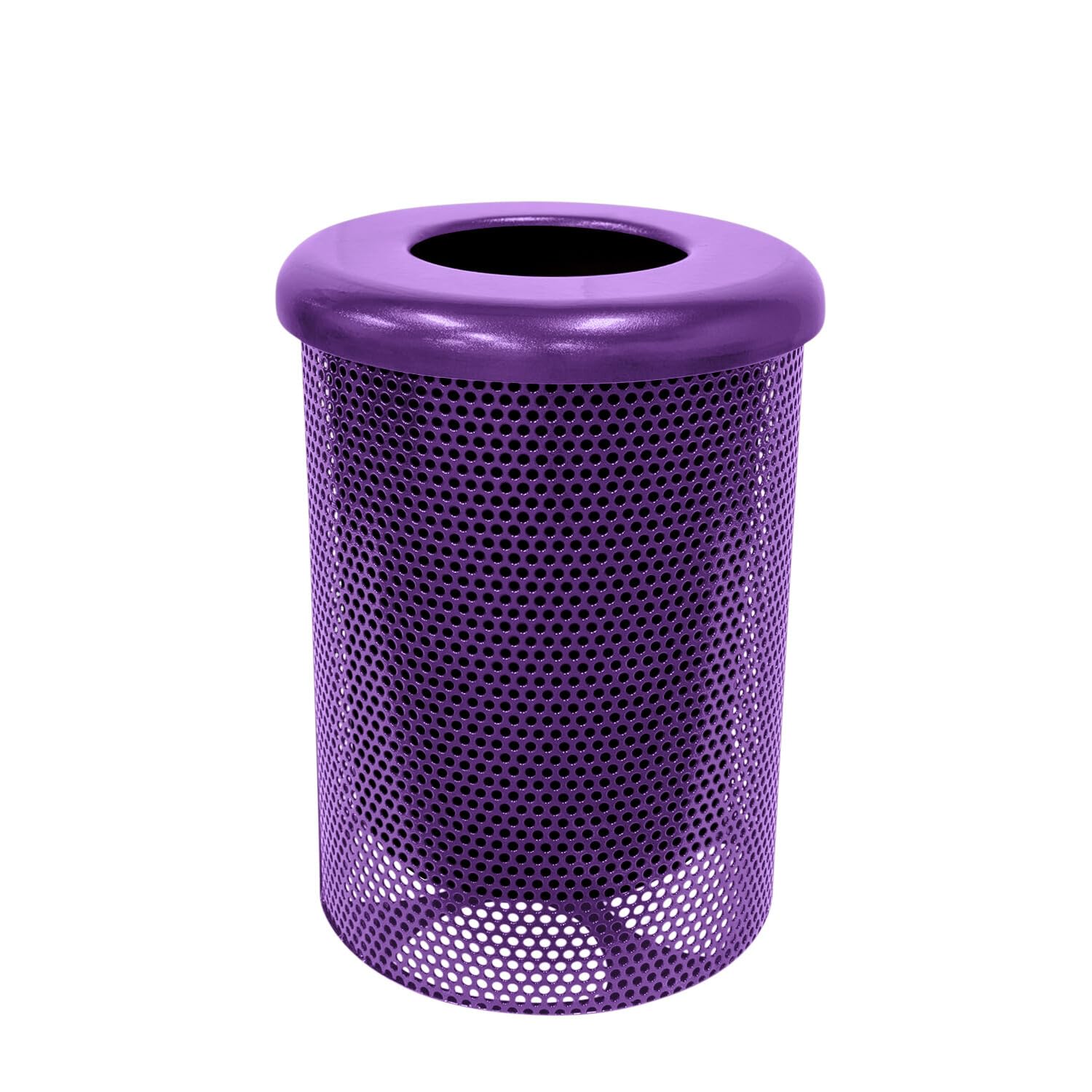 COATEDOUTDOORFURNITURE RFT-P-TXTPUR Heavy Duty Round Trash Receptacle with Flat Top, Liner Included, 32 Gallon, Textured Purple, Made in America