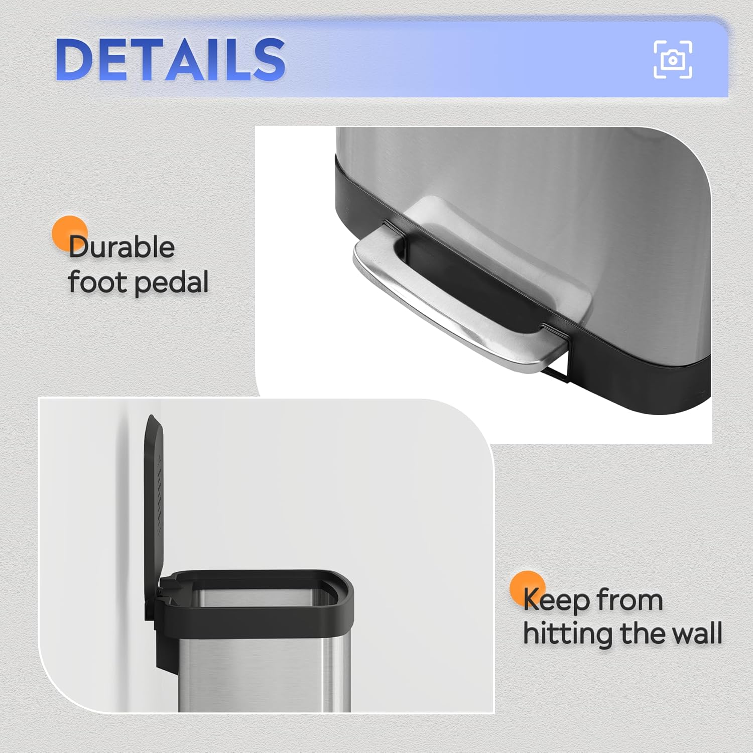 - 【Soft-Close Lid】The kitchen trash can features gentle, silent lid closure thanks to a built-in slow-drop mechanism—no loud slams to disturb family or pets. Smooth motion extends lid lifespan by reducing wear and tear on hinges.