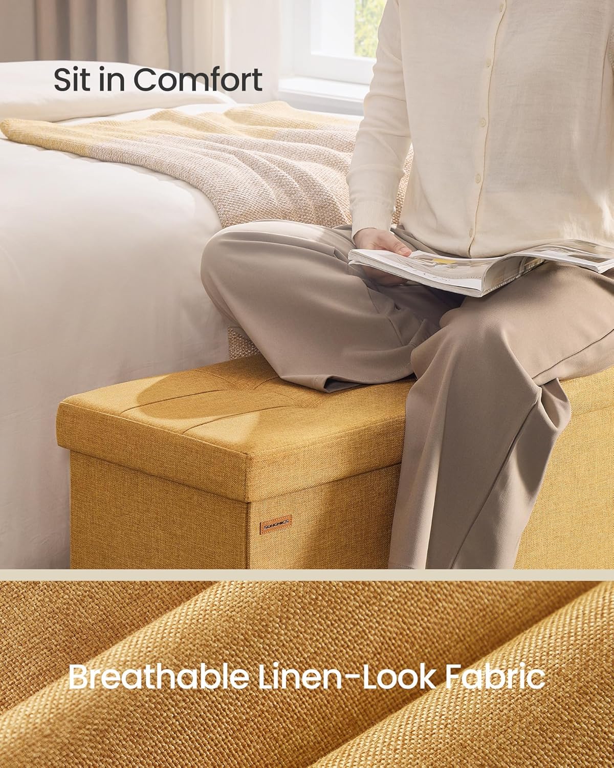 SONGMICS Mazie Collection - Storage Ottoman Bench, 43 Inches Folding Foot Rest Stool, End of Bed Bench, Easy Assembly, for Living Room, Bedroom, Entryway, Ginger ULSF077K04