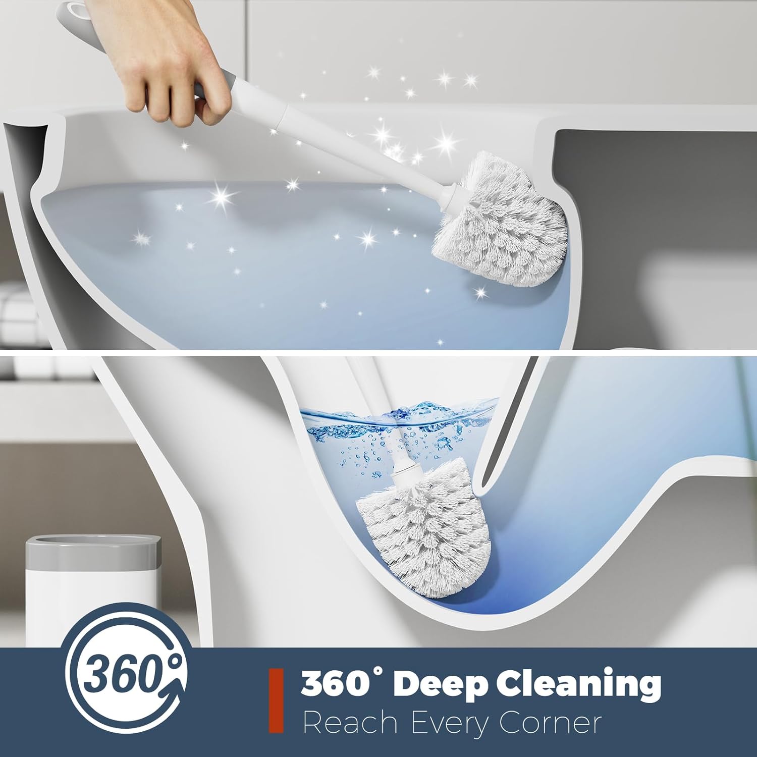 - 【360° Clean】The toilet brush head with classic design cleans the grooves and the lower edge of the toilet bowl
