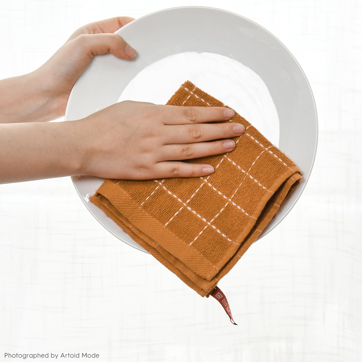 Artoid Mode Checkered Designed Cotton Caramel Terry Kitchen Dish Cloths, 12x12 Inch Soft Absorbent Quick Drying Cleaning Kitchen Rags Set of 6