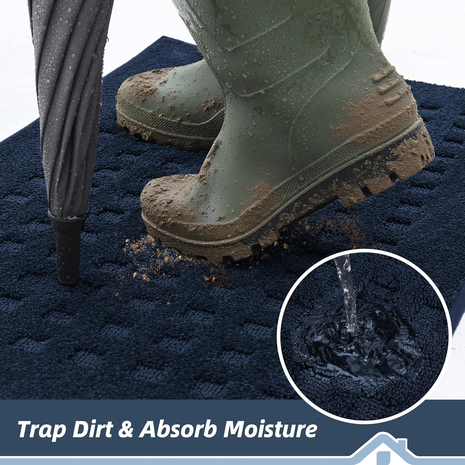 - Trap Dirt and Moisture: Door mats are made of premium Polyester and extremely dense yarns, which are extremely absorbent and stain-resistant. They absorb moisture well and quickly and also scrape dirt off the shoes, keeping the floors clean and dry. Widely used in any weather, especially rainy, snowy or muddy weather. Suitable for front door, back door, entryway, indoor entrance, etc.