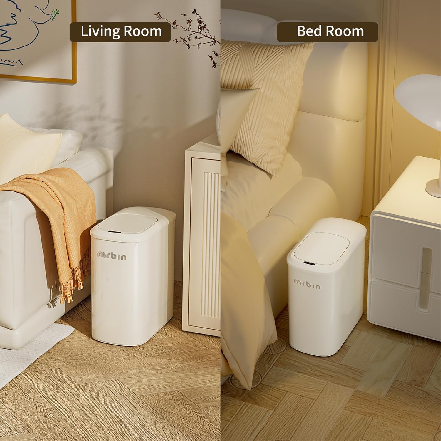- Compact Lid Design: Our touchless trash can features a smaller lid that effortlessly conceals the trash inside, keeping it out of sight. This thoughtful design keeps your space looking neat and ensures privacy by hiding the contents from view.