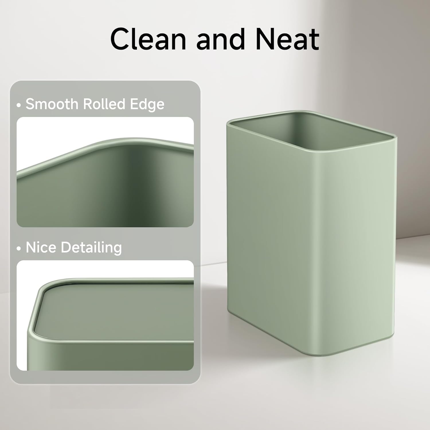 TIPGO Small Metal Trash Can, 2.1 Gallon Slim Trash Can for Bathroom, Wastebasket Garbage Bin for Bedroom, Office, Kitchen, Under Sink (Green)