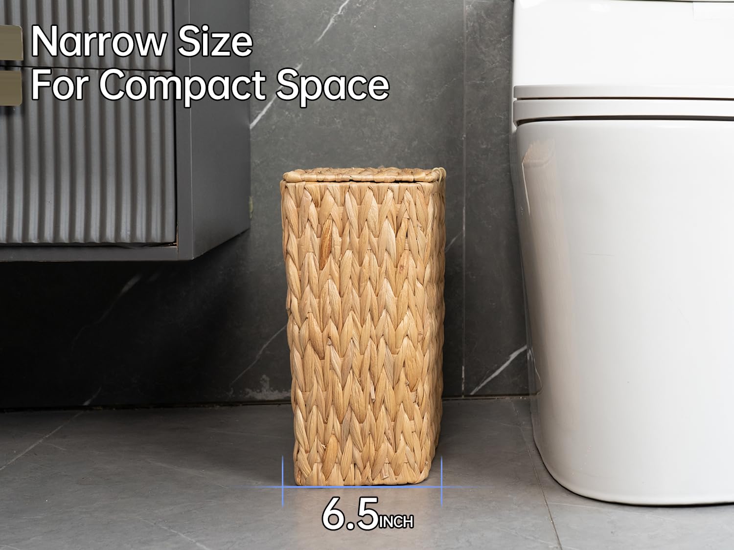- Space-Saving Design for Compact Areas:Measuring just 13.4"H × 12.4"L × 6.5"W, this small bathroom trash can is engineered for tight corners like cramped bathroom nooks or narrow bedroom aisles. Its wicker-woven frame maximizes vertical storage without sacrificing capacity, the compact footprint liberates floor space while holding essentials–perfect for urban apartments and minimalist setups