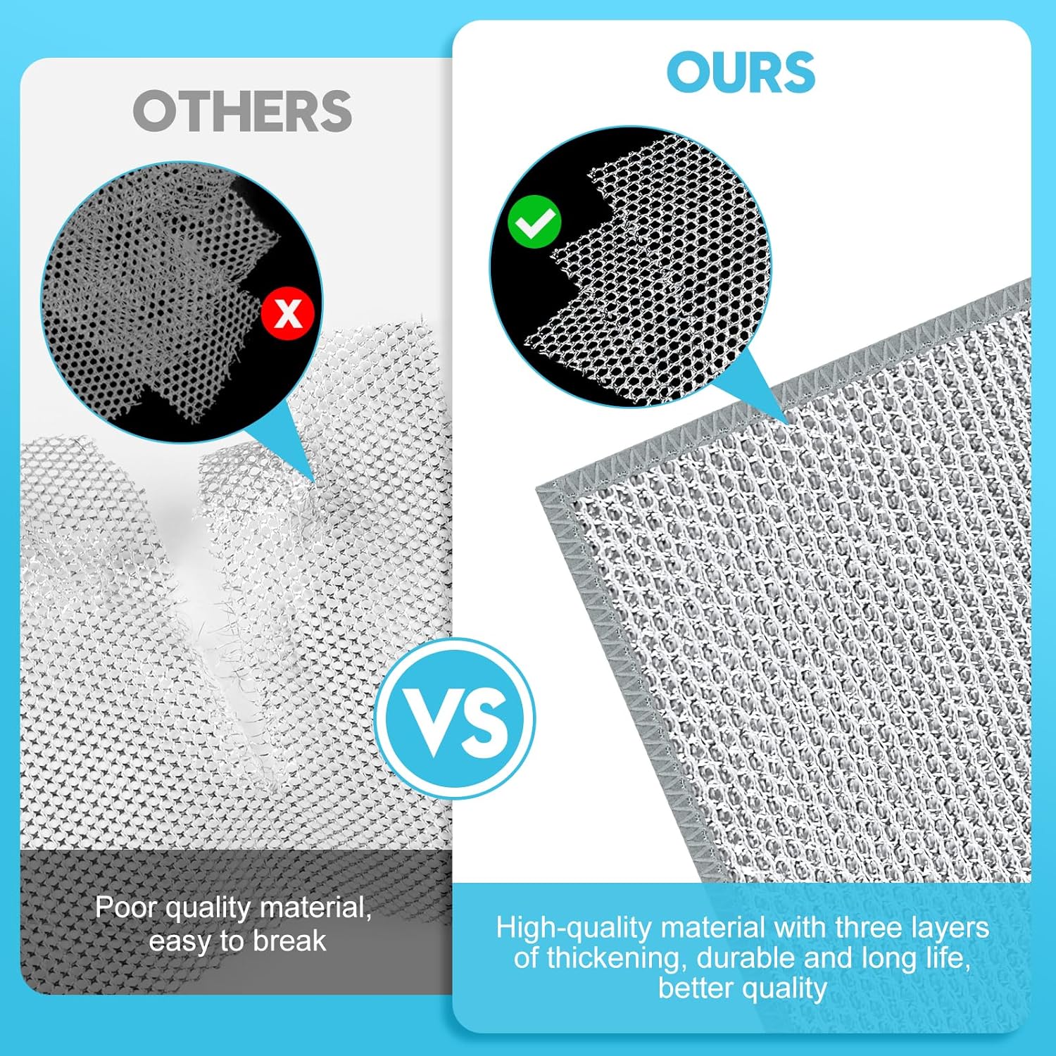 - 【Perfectly Sized】You will receive 10 pieces of well-made multipurpose wire miracle cleaning cloths, each measuring 9.87“ x 9.87”, with hemmed edges so they won't fall apart during cleaning. This design is suitable for handheld use without hurting your hands, provides enough surface for easy maneuvering, and covers dirt effectively, making it a top choice for everyday kitchen cleaning.