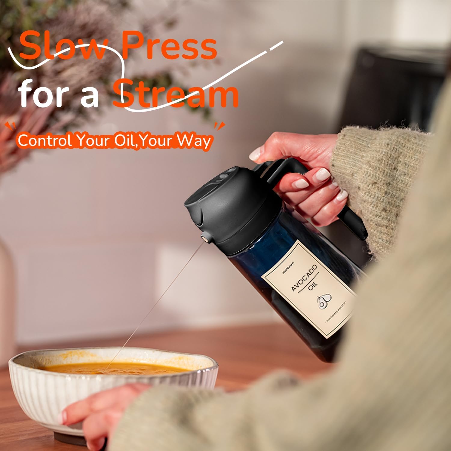 - Innovative Spray Nozzle Design: Offers precise control with a fine mist from quick presses and a steady stream from slow presses. A reliable cooking oil sprayer for all your cooking needs