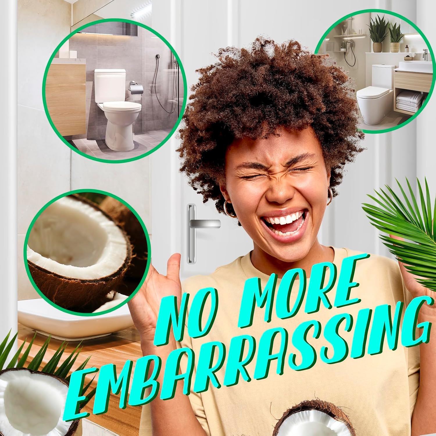 - Scent: A blend of coconut, chamomile and vanilla. It removes bathroom odors before they begin so you can step away feeling fresher than when you arrived