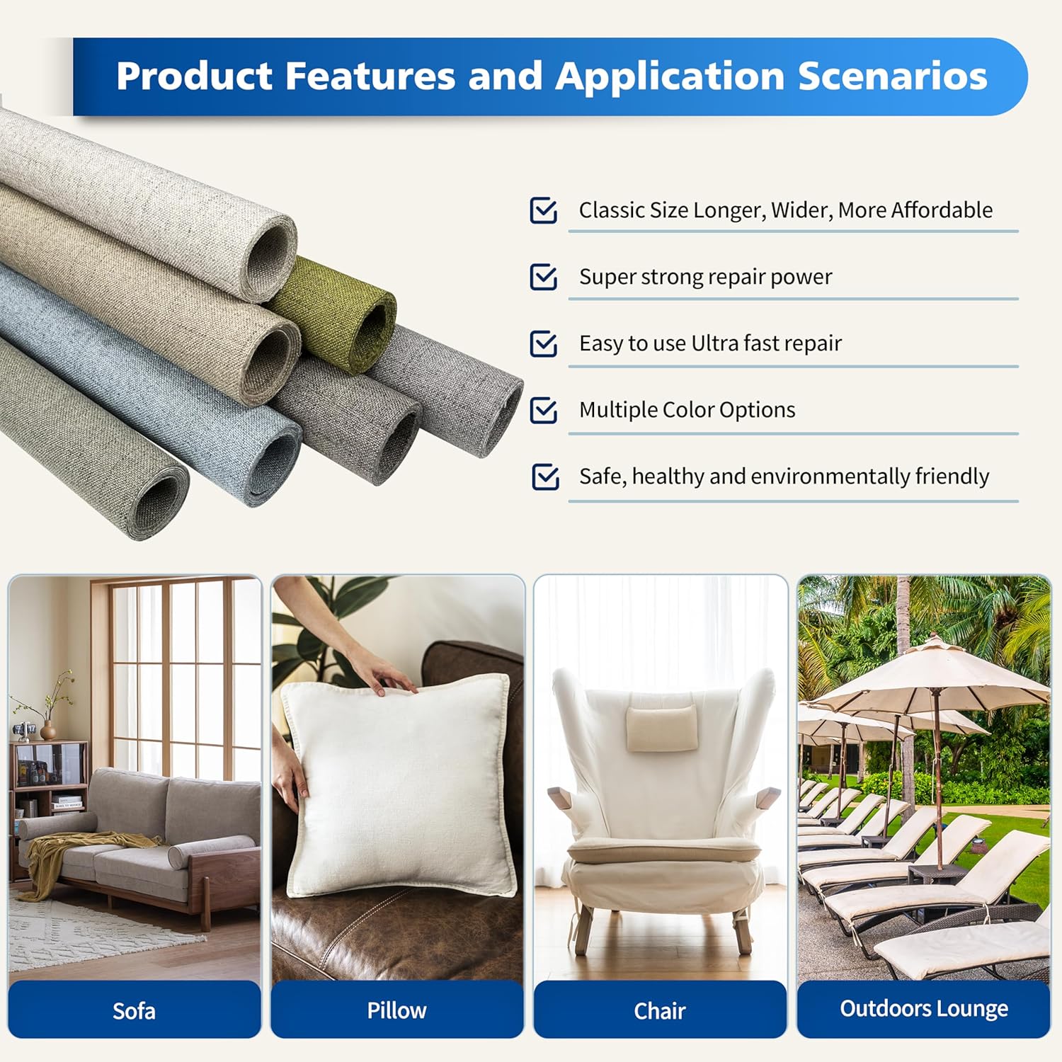 - Soft Fabric Repair Tape: Classic size 16" x 80", economical and practical, made of pure cotton linen repair tape, with a smooth and soft surface, comfortable and breathable, scratch-resistant and durable, it does not fade after long-term use, providing the comfort you desire while completing the repair.