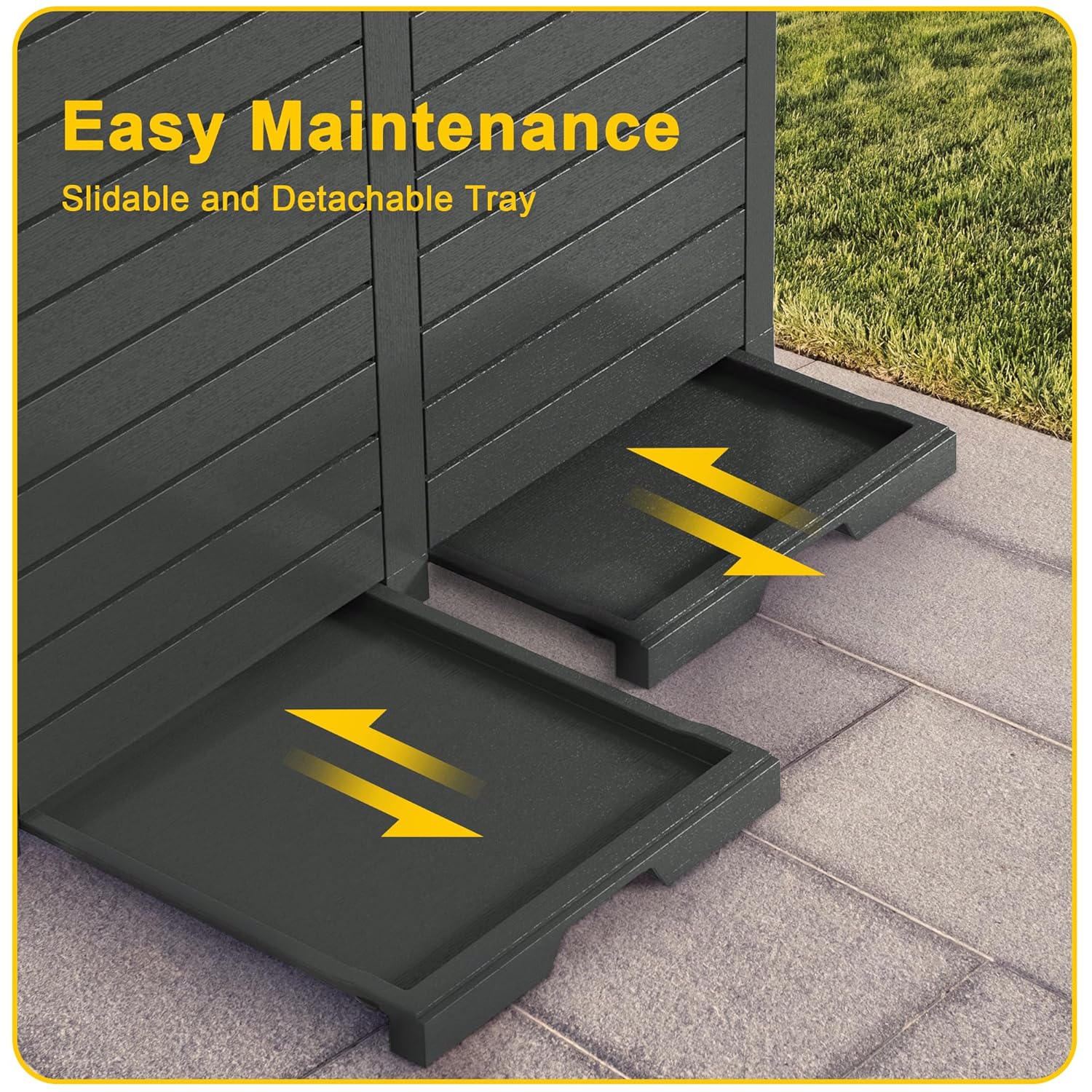 - Easy assembly: This outdoor trash bin comes with a detailed user manual. No screws or tools required, just snap the panels together and the installation can be completed in about 10 minutes. For more support, please refer to the installation videos on the page