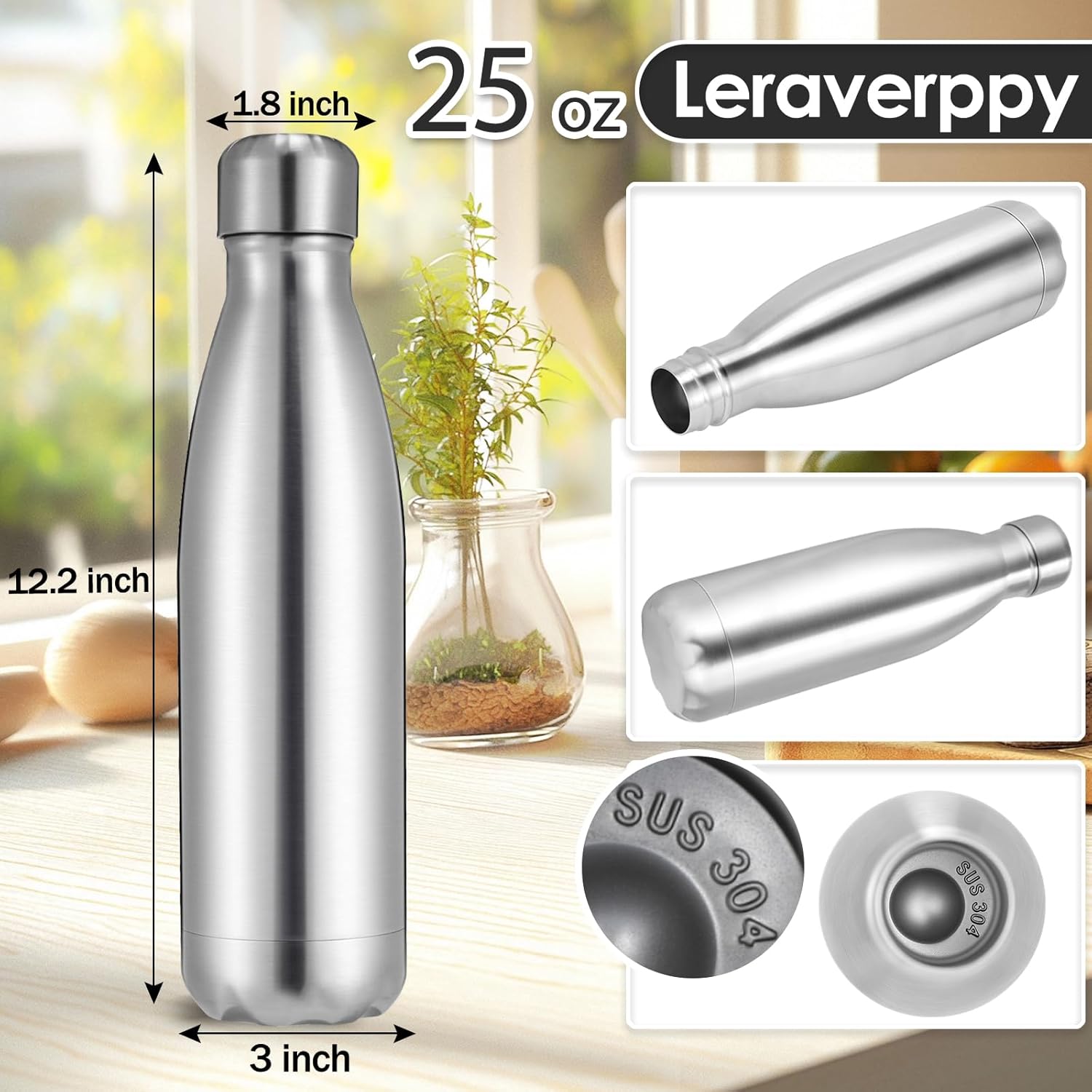 - 《Food-Grade 18/8 Stainless Steel Liner》Our water bottle is made of 18/8 food-grade known as 304 stainless steel.BPA Free,Non-toxic,No metallic taste,safe and healthy for all your water needs.Moms can trust our 304 stainless steel water bottles — designed to keep your little one’s drinks safe and healthy.Drink in the joy of every drop in your healthy life.