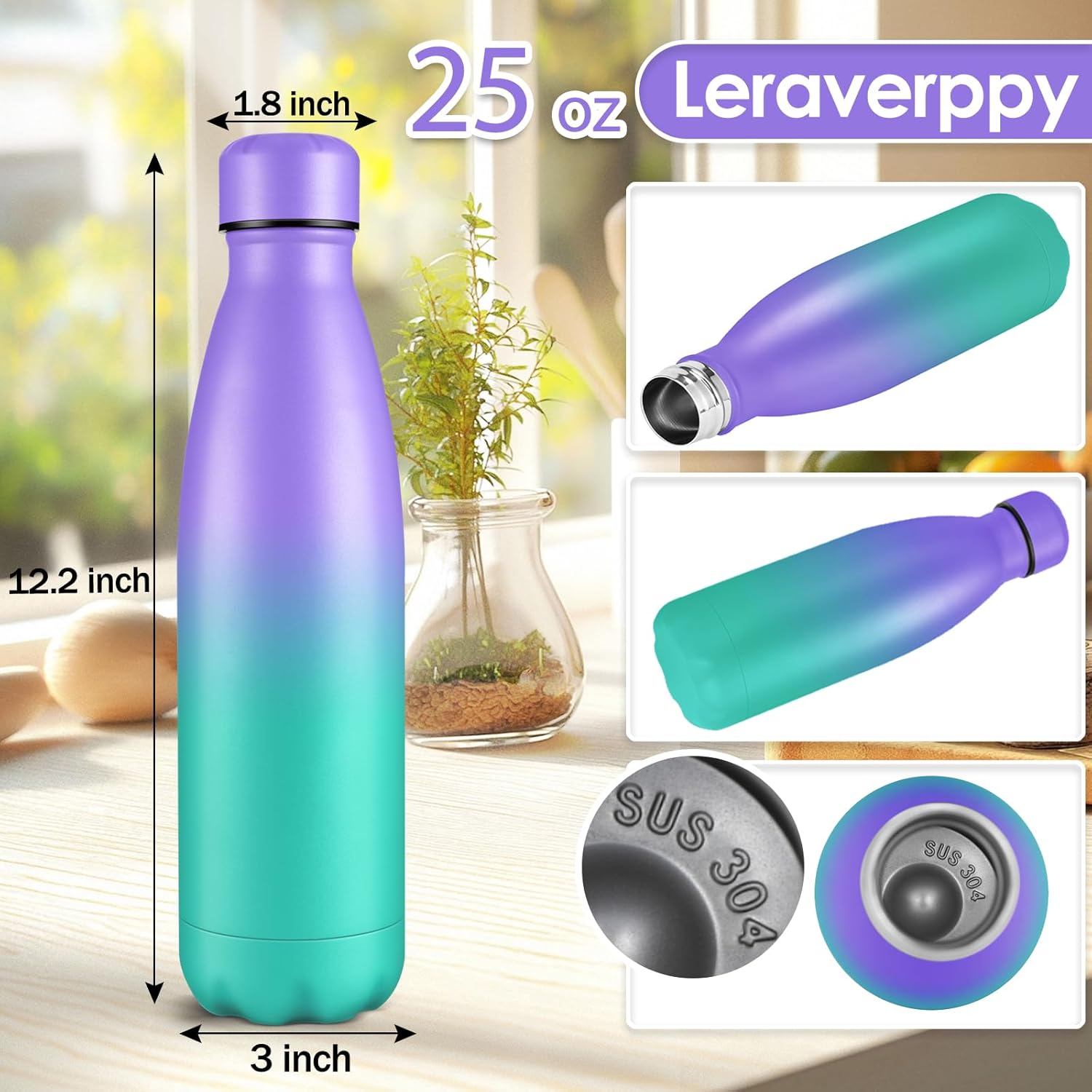 - 《Food-Grade 18/8 Stainless Steel Liner》Our water bottle is made of 18/8 food-grade known as 304 stainless steel.BPA Free,Non-toxic,No metallic taste,safe and healthy for all your water needs.Moms can trust our 304 stainless steel water bottles — designed to keep your little one’s drinks safe and healthy.Drink in the joy of every drop in your healthy life.