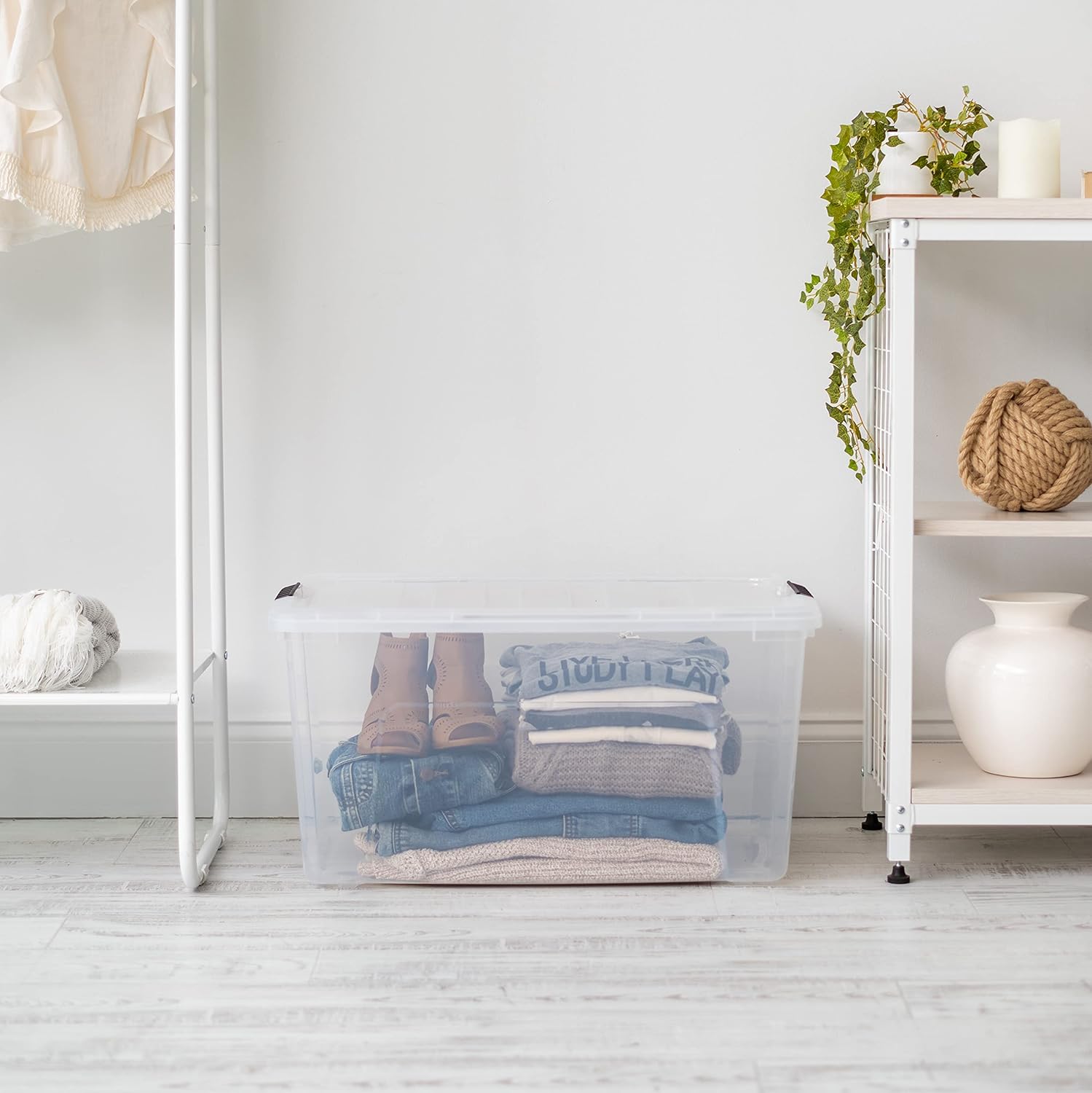 - PULL HANDLE & BUCKLES: A handy handle on the bottom of the bin, makes it easy to pull it out even from high shelves, while secure buckles keep lid in place.