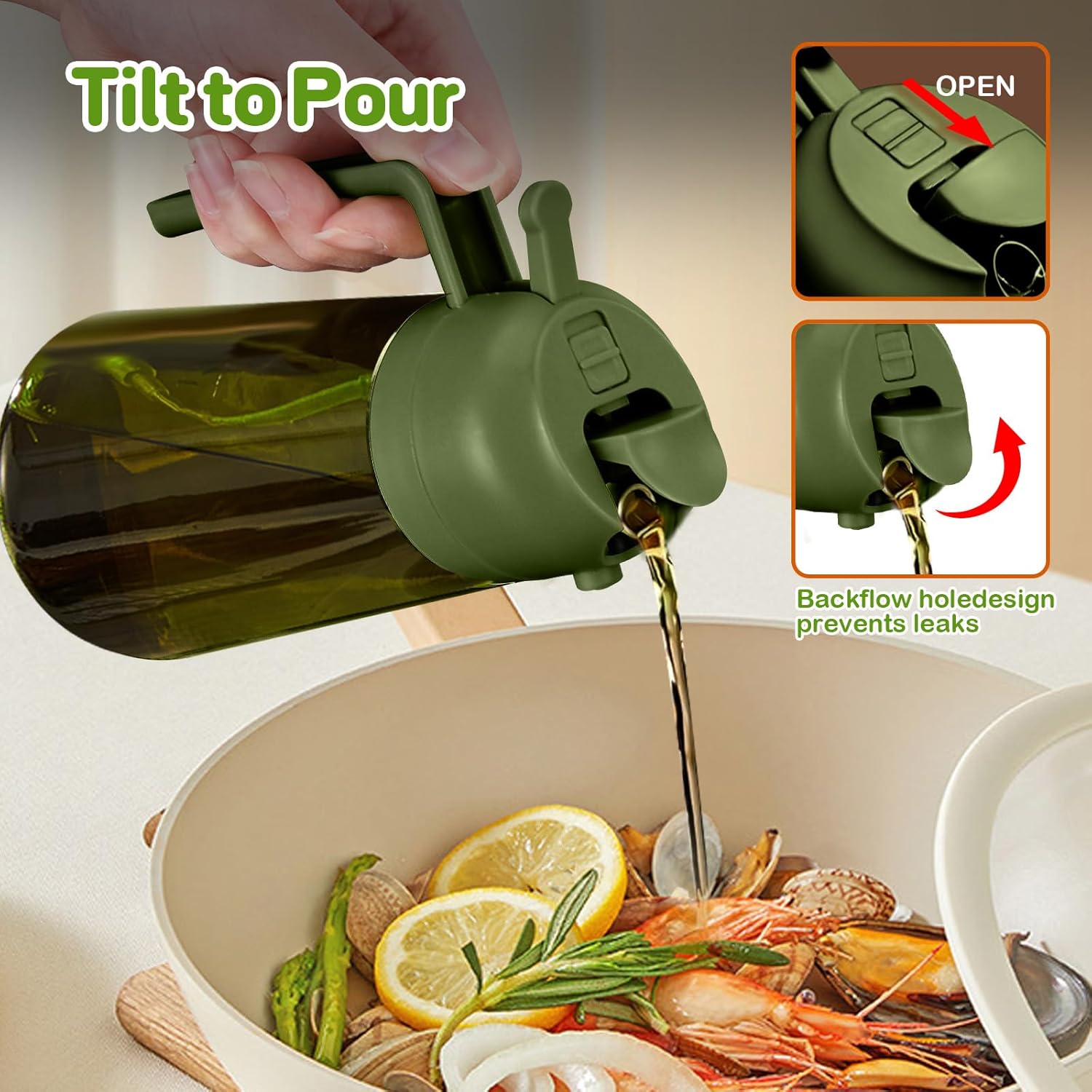 - 【Dual-Function Design & Multi-Purpose】: Oil mister spray bottle for cooking offers the convenience of both spraying and pouring oil, suitable for a wide range of food preparation processes such as salad dressing, griddle, roasting, grilling