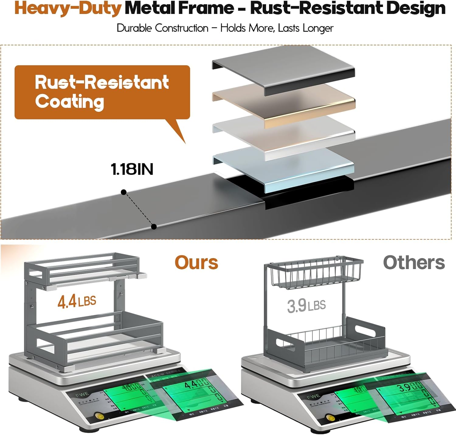 - 【Sturdy metal sheet frame&Rust-Proof】The under sink organizer is built from solid metal sheets with a strong frame and superior rust-resistant design, making it durable and ideal for long-term use in humid areas like kitchens,bathrooms and Laundry Room.