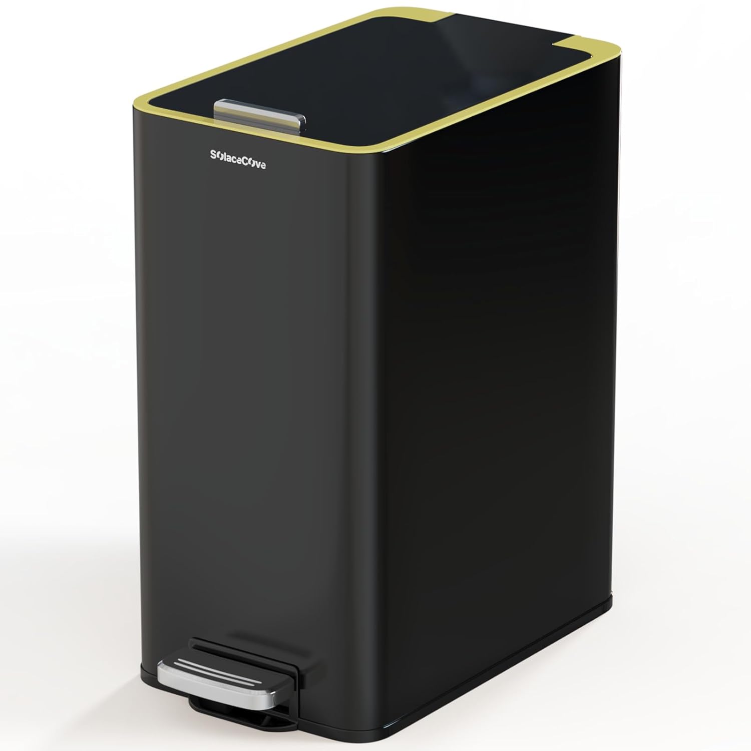 Stainless Steel Trash Can with Soft Close Lid,15 Liter/4 Gallon Garbage Can Kitchen Removable Wastebasket, Rectangular for Bathroom, Office (Black)