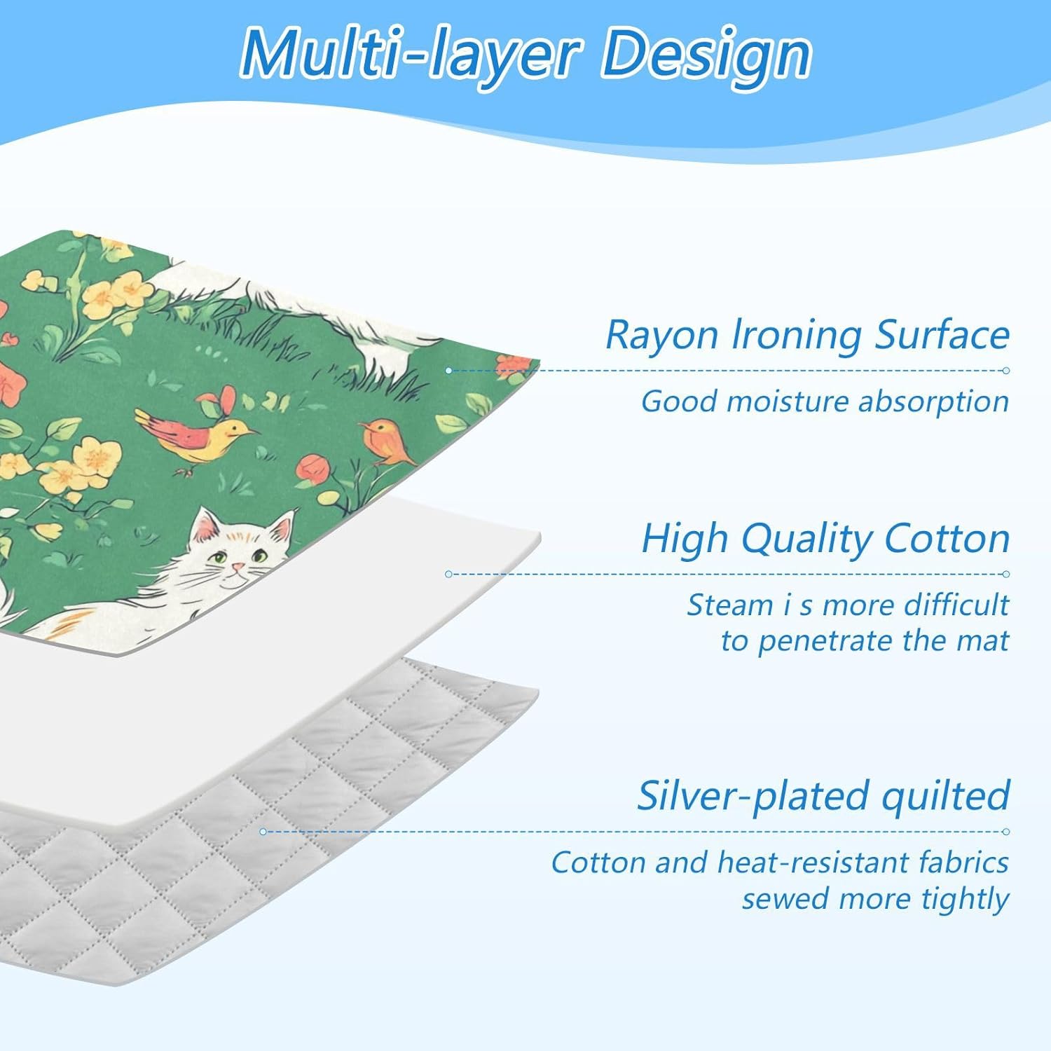 Ironing Mat Portable Ironing Pad Ironing Blanket for Table Top Heat Resistance Double-Side Using Travel Large 47.2 x 27.6 Inch Foldable Lightweight Green Spring Persian Cat and Hummingbird
