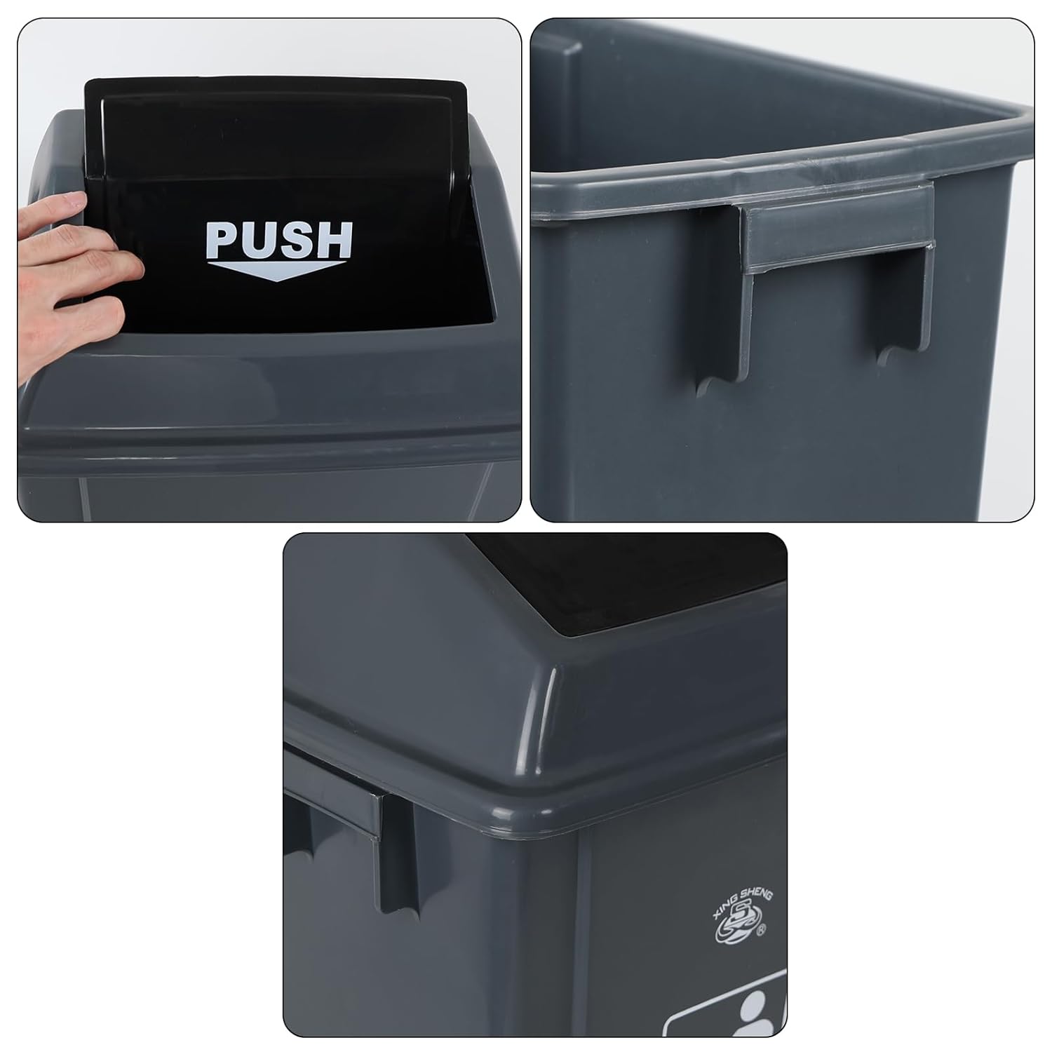 - Featuring the swing lid design, you can throw away the garbage by gently pushing the top. The lid will automatically return to its original position to lock the odor