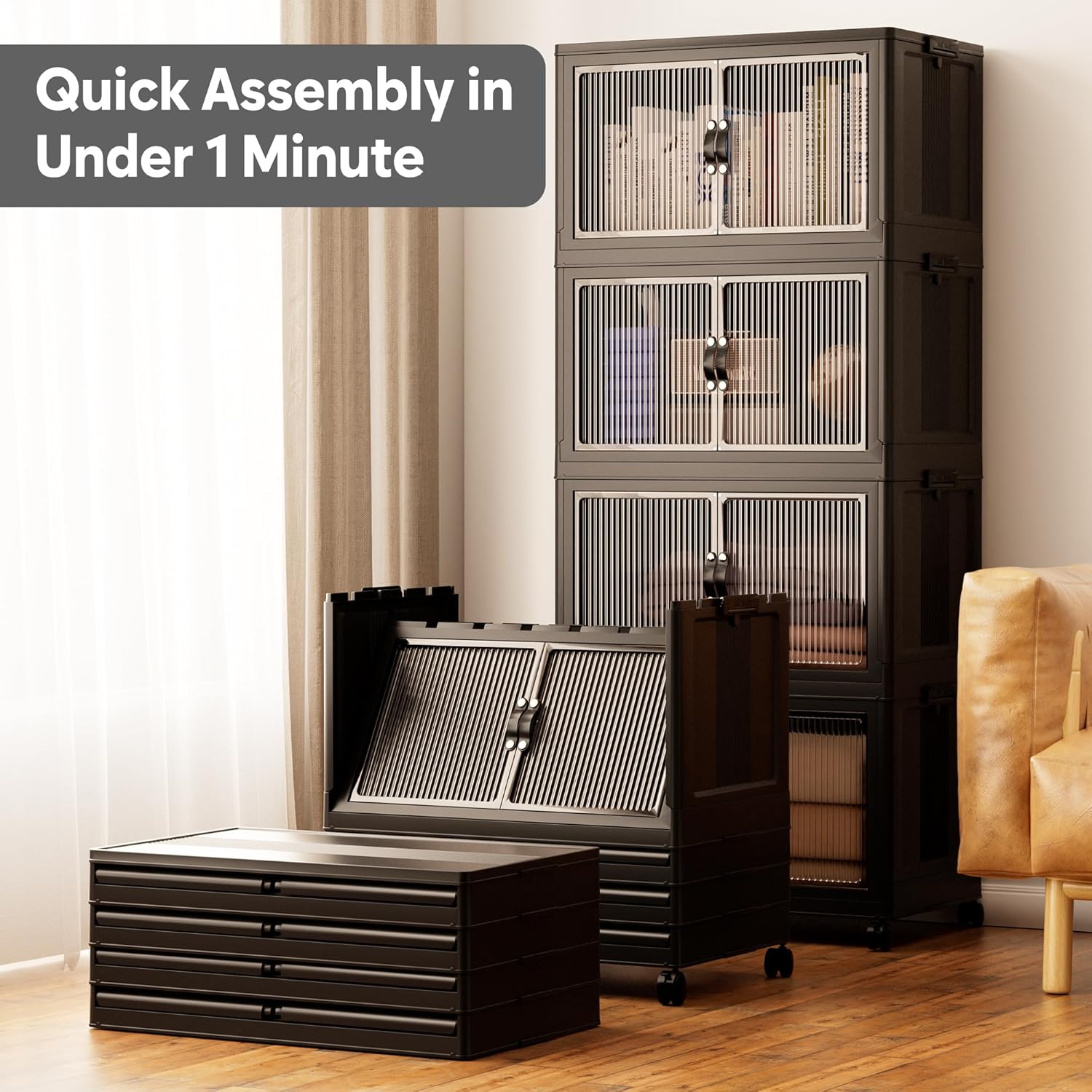 Jalove 50QT Plastic Storage Bins with lids, Stackable Collapsible Storage Containers with Wheels, Closet Organizer and Drawers, Clothes Storage Cabinet for Home Office Garage, 4 Pack Black