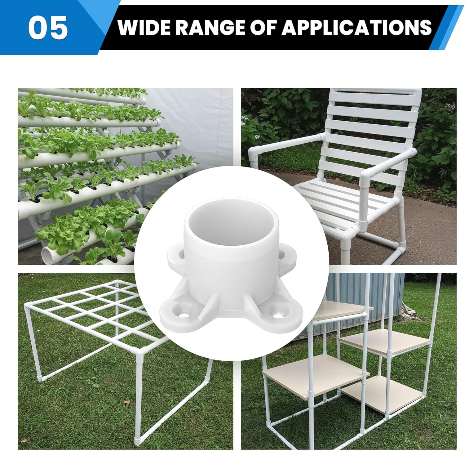 - 【Precision Fit for 3/4 Inch PVC Pipes】Designed for 3/4" Schedule 40 PVC pipes with an actual OD of 1.06". Provides a snug, secure fit for table legs, shelves, and furniture builds.