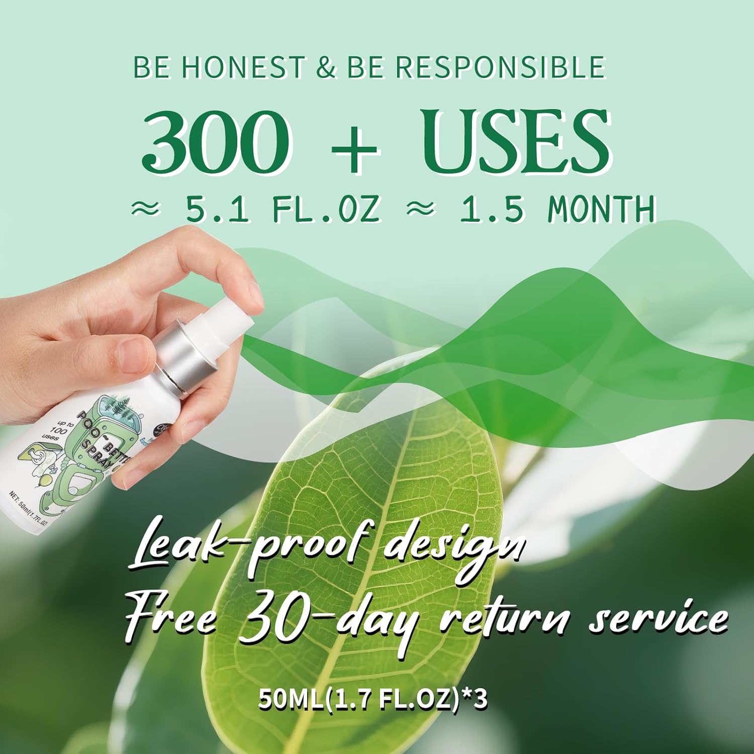- ELIMINATE ODORS INSTANTLY: This travel - sized bottle leaves your bathroom smelling clean and fresh. Just spritz 2 - 4 sprays in the toilet before use, lock down unpleasant odors below the water, effectively preventing odors before they begin