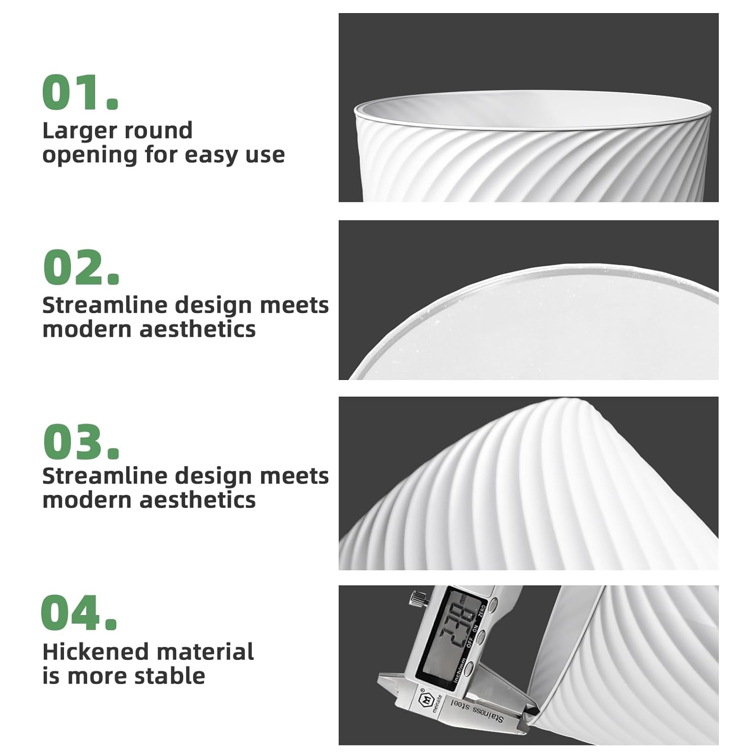 - đăSleek & Modern Curved Designă Upgrade your space with our stylish 1.8-gallon trash cans (3-pack), featuring a unique Curved look for a contemporary vibe. Perfect for bathrooms, bedrooms, offices, or kitchens, these bins blend seamlessly with any decor while offering durable, thickened PP plastic construction.