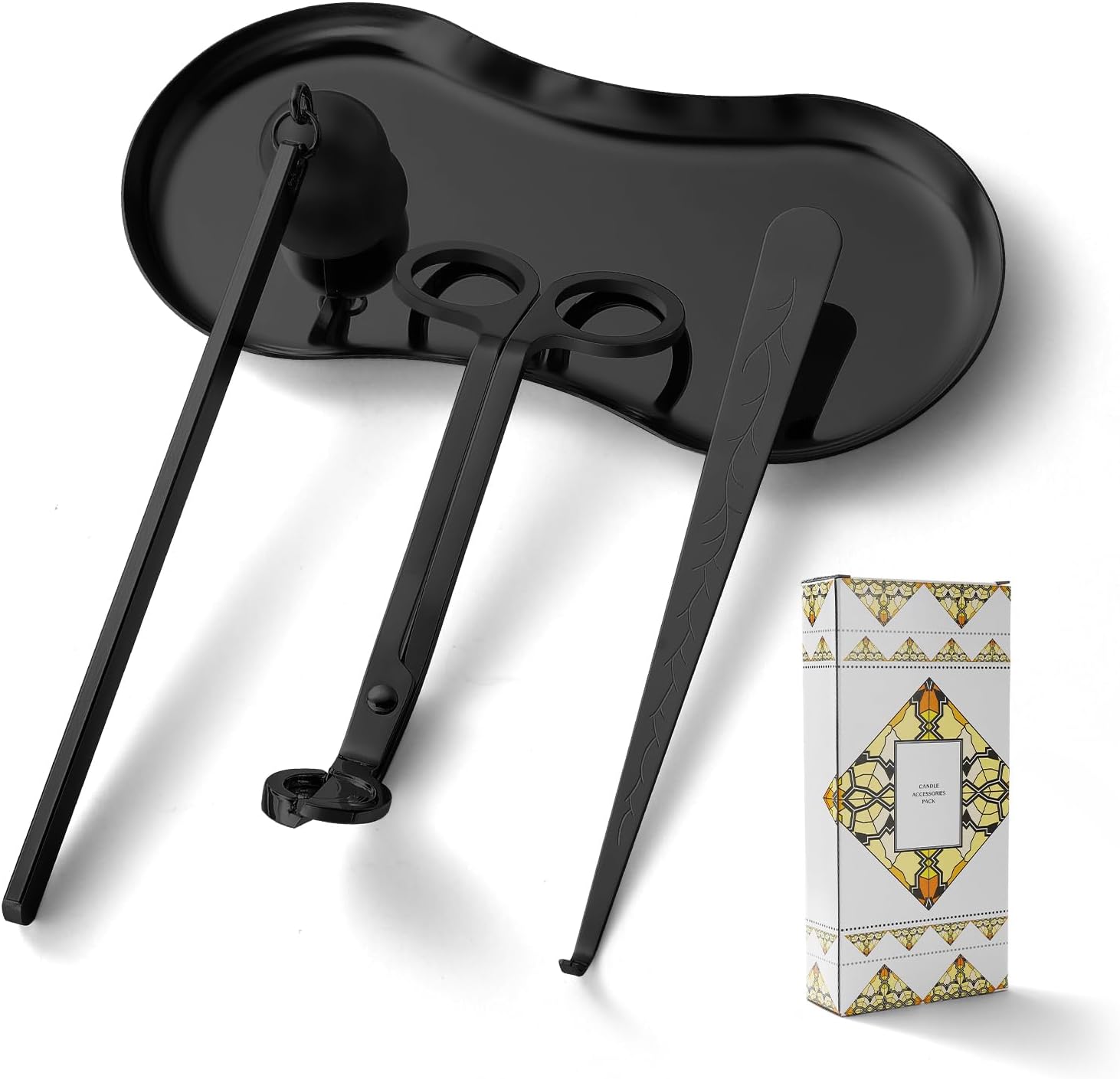 - Professional 4-in-1 Candle Care Kit: Your essential set includes a Candle Snuffer, Candle Wick Trimmer, Candle Wick Dipper,and Tray Plate. Perfectly sized tools ensure effortless, smoke-free extinguishing, clean wick trimming, and precise wick positioning for safer, cleaner candle burning and extended candle life. Comes in a stylish gift package.