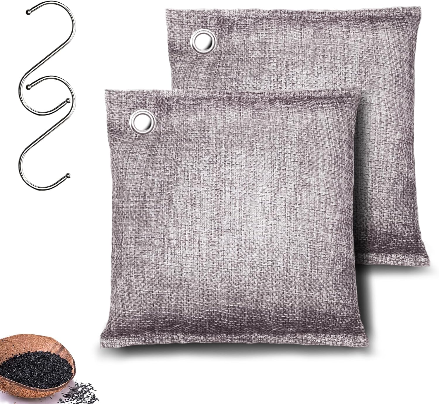- Natural, Non-toxic, and Safe: The Coconut Shell charcoal bags are made of 100% Nature. They are safe for children and pets, without any fragrance and chemicals. Standard size Coconut Shell charcoal particles have a larger contact area with air, the performance of adsorption is better, effectively remove odors and bring fresh air.
