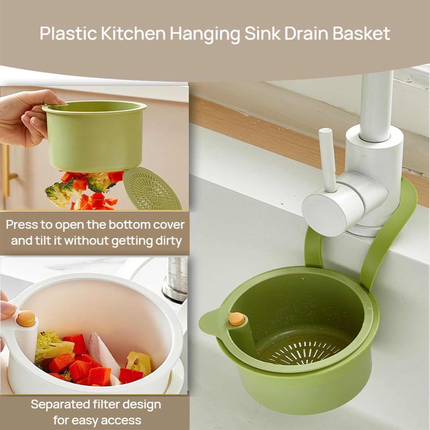 Faucet Hanging Strainer Kitchen Sink Food Waste Catcher Drain Basket, Plastic Kitchen Sink Strainer Automatic Dumping Draining Basket, Food Fruit Vegetable Drain Shelf Sink Storage Holder (Green)