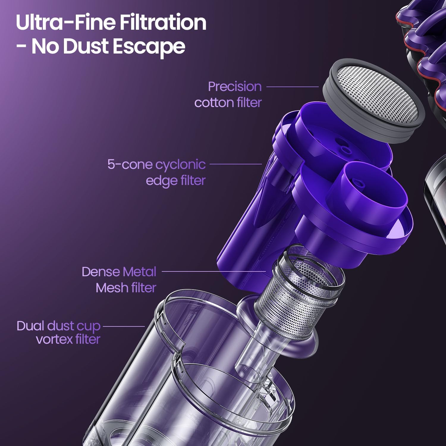 - Advanced Filtration Technology: Experience enhanced air quality with our HEPA filter and patented dual-canister cyclone system capturing 99.97% of fine particles including common household dust preventing recirculation for a fresher home environment that's comfortable for kids and pets