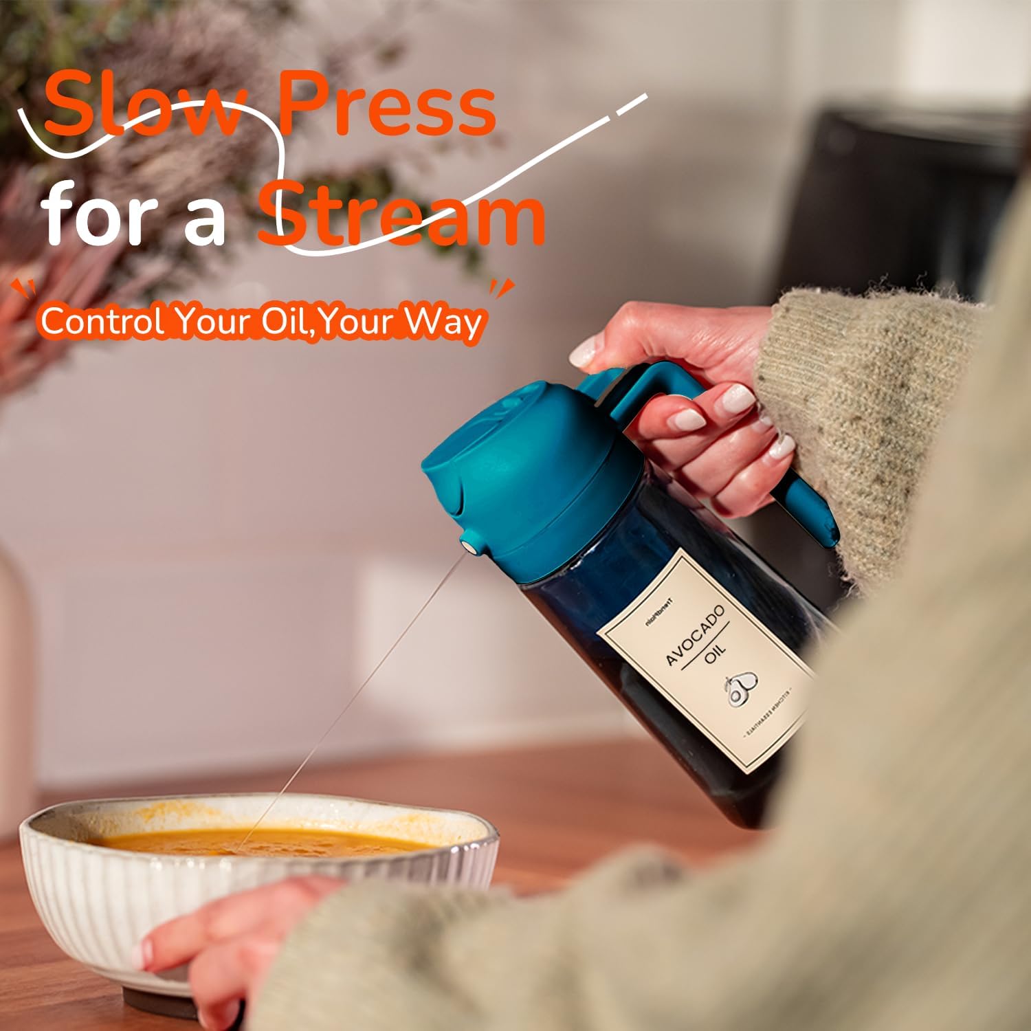 - Innovative Spray Nozzle Design: Offers precise control with a fine mist from quick presses and a steady stream from slow presses. A reliable cooking oil sprayer for all your cooking needs
