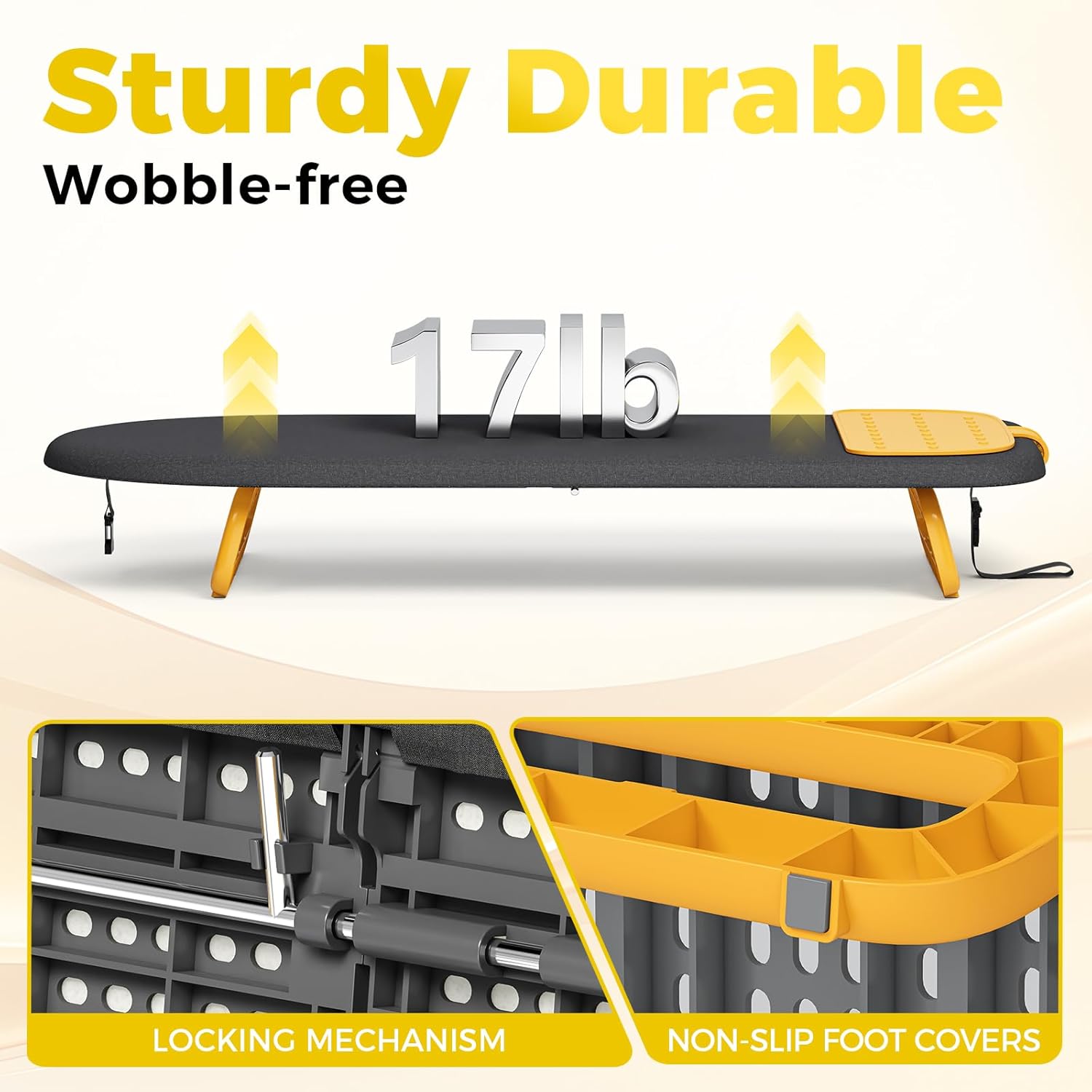 - Practical Details: This mini iron board features a convenient hanging rope with a buckle, not only can be hung on wall hooks, behind doors, also can storage in a closet. Meanwhile, four anti-slip silicone dots help shield floors from scratches and easy to use on table top, ensuring that it won't shake or shift easily during the ironing process