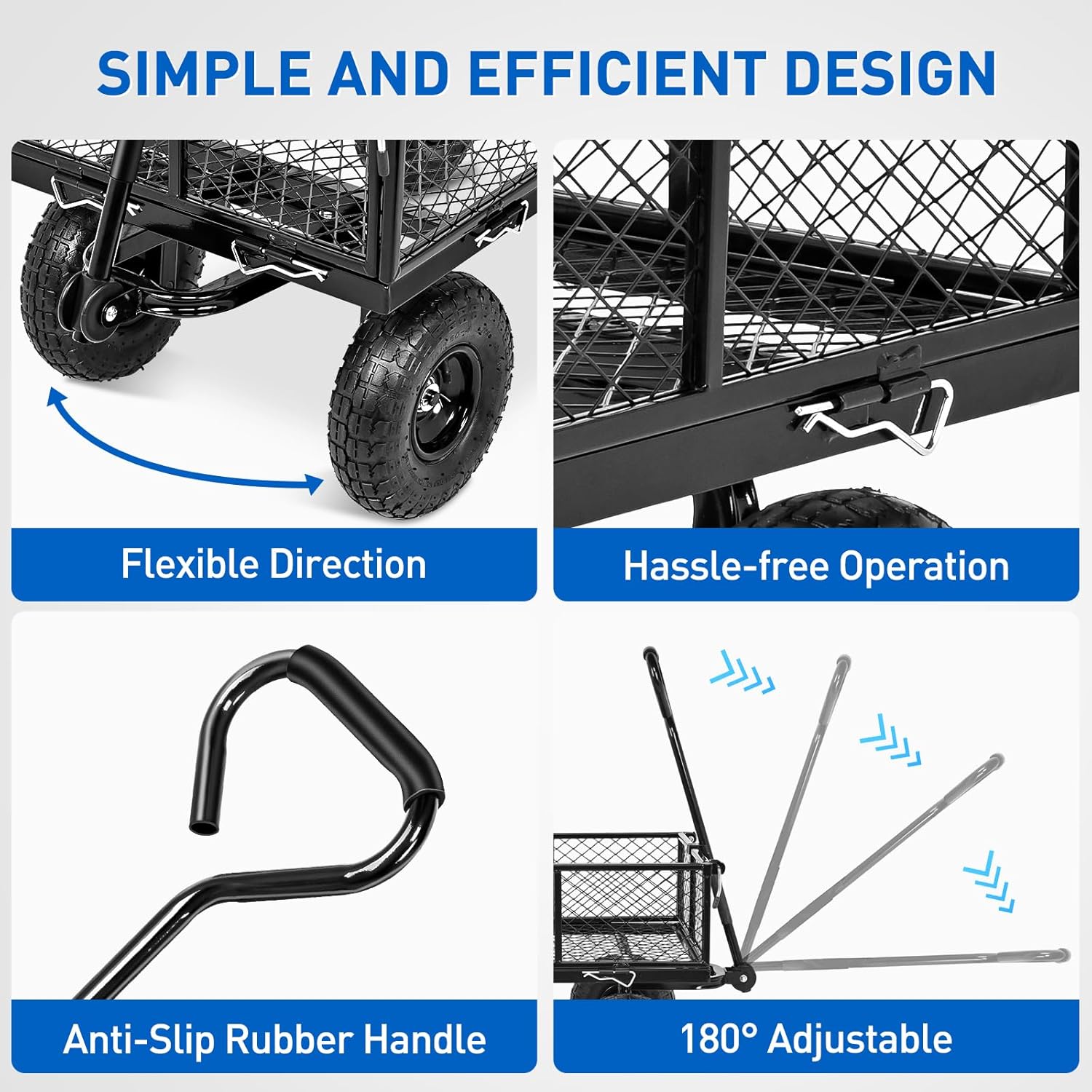 - 2-in-1 Convertible Design – Switch between a fenced cart and flatbed for different loads, with a spacious 3.69 cu. ft. cargo area