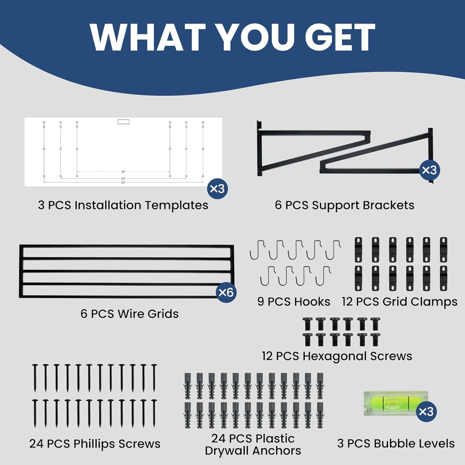 - HEAVY-DUTY LOAD CAPACITY: Each 2' x 4' wall shelf is designed to hold up to 250 lbs, providing a total of 750 lbs per set. Built from reinforced square-tube steel, these shelves easily handle heavy storage bins, toolboxes, camping gear, and bulky garage equipment without bending or sagging.