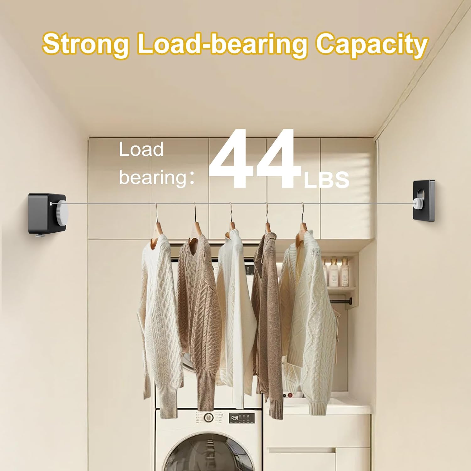 - The indoor/outdoor retractable clothesline has a maximum load capacity of 44 LBS and a length of 13.8 Fts, ensuring more space for drying clothes.