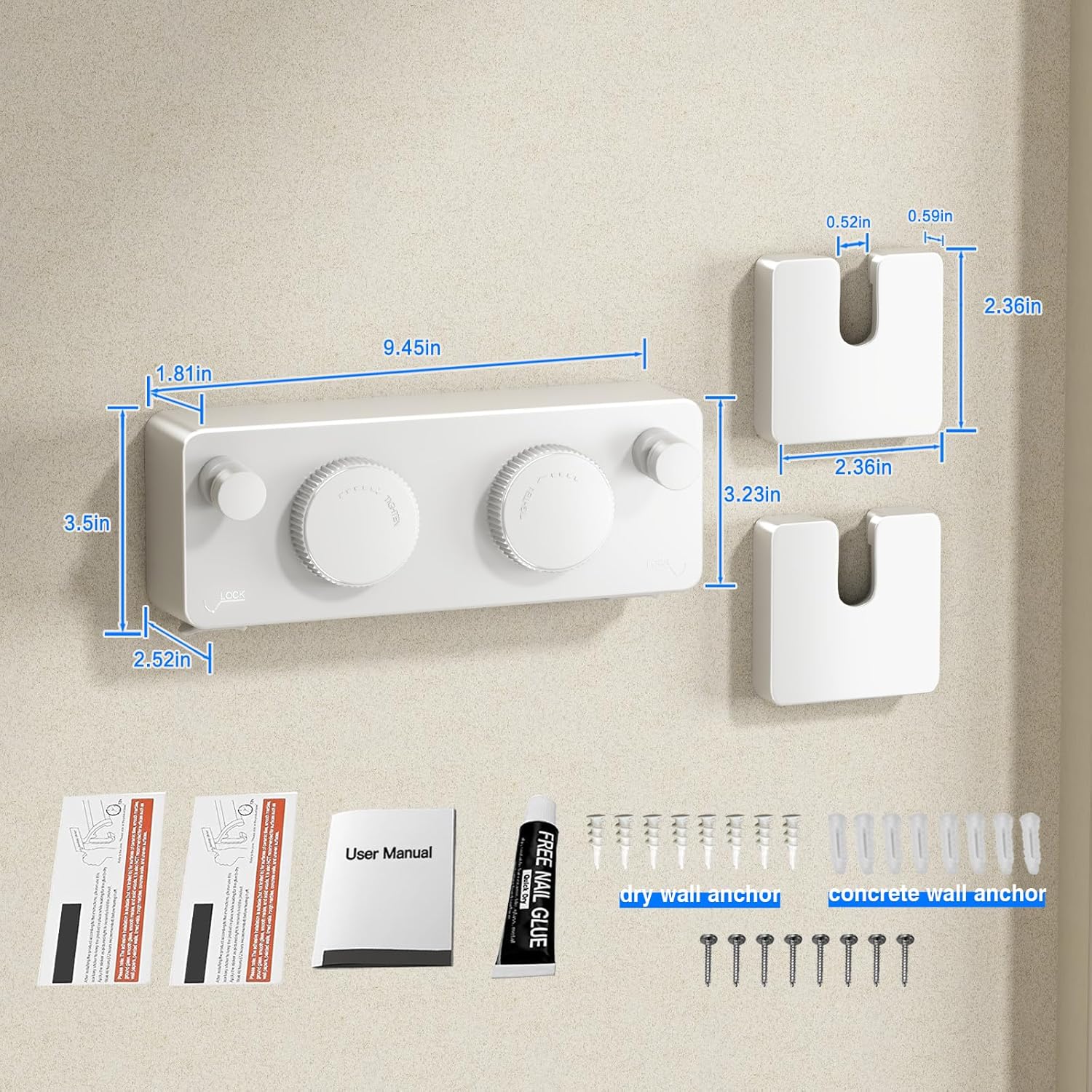 - 【Easy To Install】This Clothesline Retracting offers you two installation options —Glue Mounting and Drill Mounting. If you plan to install it indoors and don't want to damage the wall, we suggest you use Glue Mounting, which won't damage your wall (only for smooth walls like tile, marble, glass, etc.). Drill mounting can be chosen to install anywhere you want.