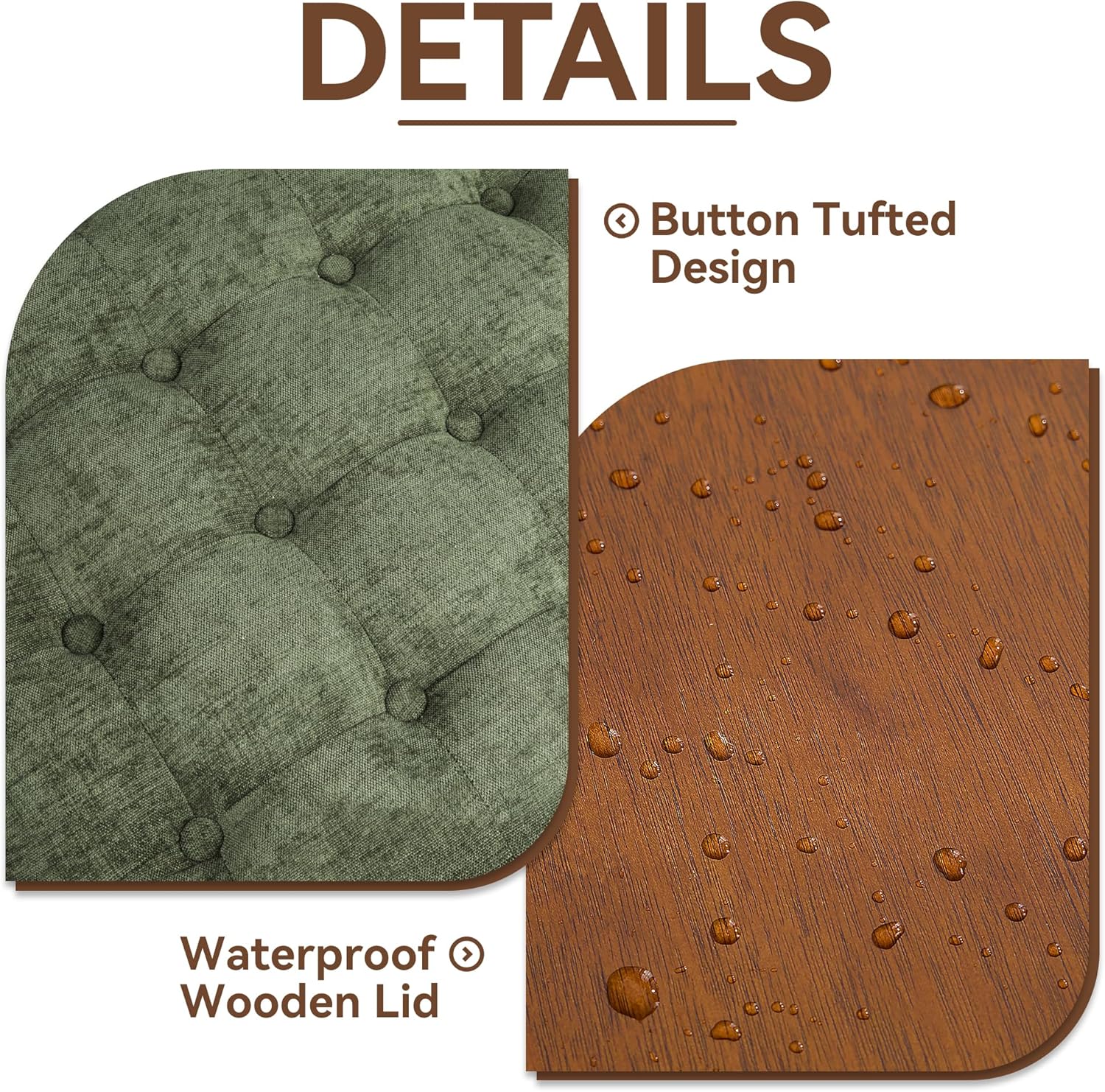 24Inch Round Storage Ottoman with Tray, Modern Tufted Circle Coffee Table with Storage, Upholstered Ottoman with Removable Top for Living Room, Bedroom, Chenille Green