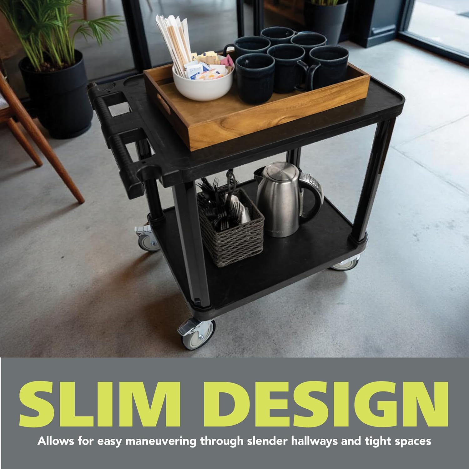 Pearington 2-Tier Compact Multi-Purpose Plastic Utility Cart with Lockable Wheels up to 150lbs, Black