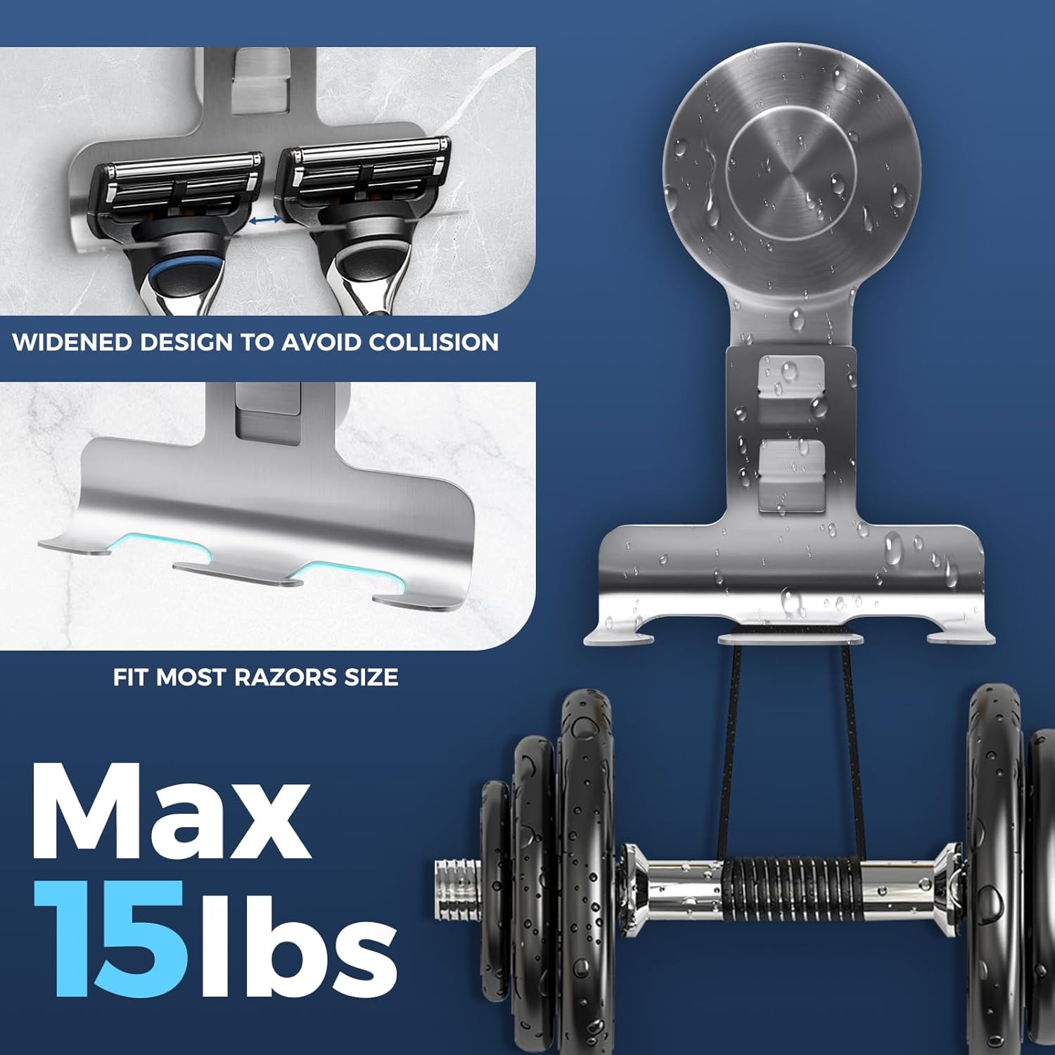- 【METAL DURABILITY】2-pack stainless steel razor holders with 15lbs(7KG) load capacity!Rust-proof construction and knob-lock tech for shake-proof grip in showers