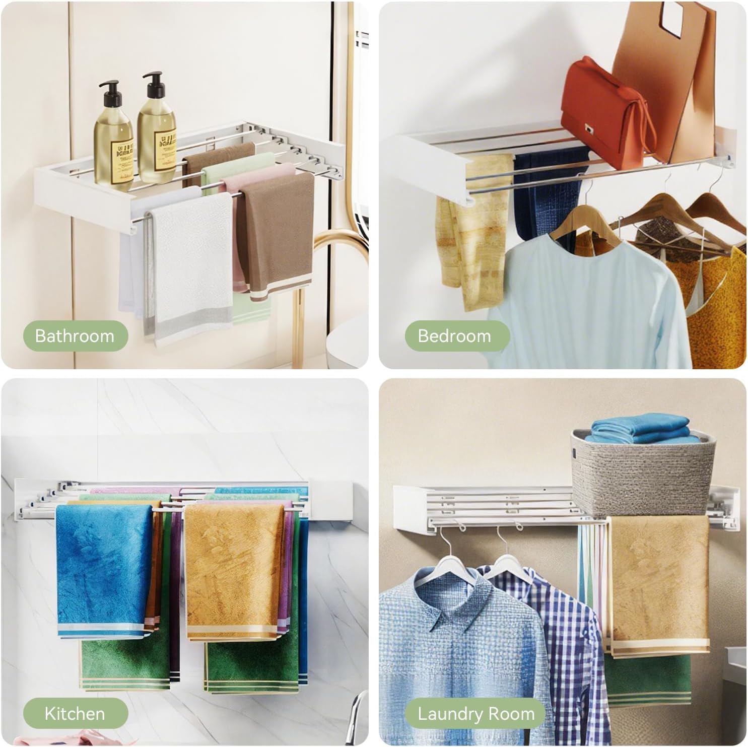 - SPACE-SAVING DESIGN: Wall-mounted drying rack folds flat against the wall when not in use, perfect for small laundry rooms, bathrooms, or utility spaces