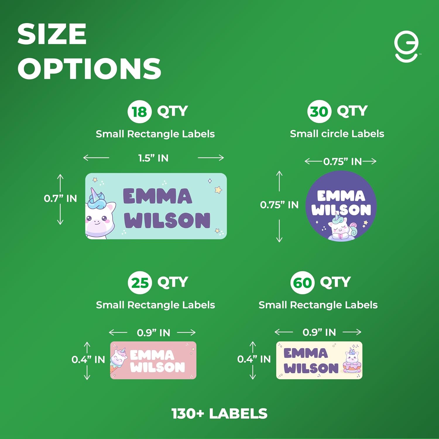 - 📏 Kids Stickers Pack of 130+ with Size Options — This set includes 133 labels in three practical sizes to fit all your child’s essentials: 18 large (1.5" x 0.7"), 30 round (0.75"), and 85 mini (0.9" x 0.4"). Use them on water bottle stickers for kids, books, school supplies for kids, lunch containers, clothing, and more—no item too big or too small!
